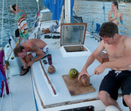 Next time around, we would prefer a catamaran. Catamarans are not as seaworthy as the equivalent mono-hull: noted, granted, and considered. If we anticipated being in any sort of bad weather, I would want the safety of a mono-hull. However, if we stick to the tropics, as we did the first time (after getting from San Francisco to Mexico), we could avoid dangerous weather. A catamaran is much more comfortable than a mono-hull. First, no side to side rocking. The difference in comfort that this provides can’t be overstated. Rocking in anchorages makes for unpleasant sleeping. Second: no heeling. Sleeping, cooking… doing whatever, at an angle while on passages is challenging and uncomfortable. Being flat on a passage is awesome. Second: catamarans have huge real estate both in the cockpit and the cabin, where everybody spends their time, and both areas are more elevated with better light and views. In both the cabin and cockpit there can be a large tables surrounded by couches, which makes time at anchor (which is most of the time) so much more pleasant. There are more cabins as well, which means space not only for our family but also for friends to join us. Four cabins is typical, which is far superior for a family trip as opposed to a two-friends-and-a-wife crew. Also, it sails considerably faster, which means less time on passage and more time living at anchor.