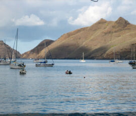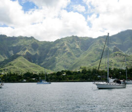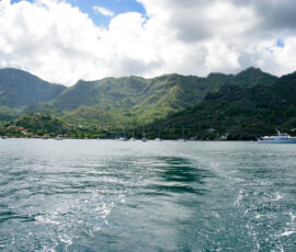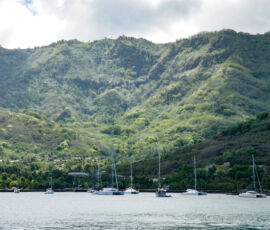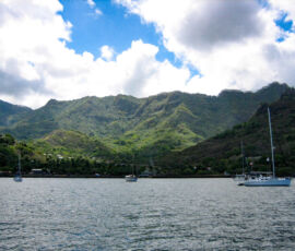 Hakatea bay has no town, no road to reach it, and only a few rough huts spread out along the beach. As we dinghied to the beach, getting ready to jump out into the water to drag the dinghy in through the surf, Mike informed us to “watch out for” the many black-tipped reef sharks that hung out right up in the surf. Sharks? His nonchalant statement implied a lack of danger, and in this case, “watch out for” was meant as “look for them because they’re very cool to catch a glimpse of.” These black-tipped reef sharks were about a foot long, and didn’t seem overly interested in ankles, so they went onto the list of ‘not so dangerous’ (as long as they come in the mini variety, at least).