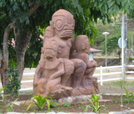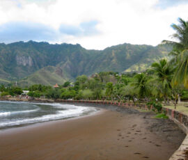 Embarrassingly, I find that I am uncomfortable in these woods. To start with, they aren’t even woods–it’s clearly a sort of jungle, though far drier than your stereotypical jungle. There are fruit trees everywhere: coconut, papaya, mango, pamplemoouse, pistach, noni, banana, and many others for which I have no translation. This is a land of plenty: you could survive off of the fruit hanging from trees alone, not even considering the abundance of sea life. We have almost none of these trees at home, and they have none of our trees. So I’m walking through a strange jungle, that’s cool, I can dig it.