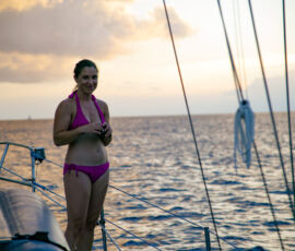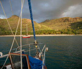 It gets better and better. We departed Hanamenu Bay on Hiva Oa around noon today, and it only took a few hours to reach our next destination: Hanamoenoa Bay on Tahuata. Yeah get those names, right? Not only are the pronunciations impossible, but every place has a name nearly identical to the one you just departed (we are constantly confounded).