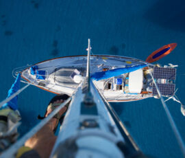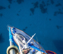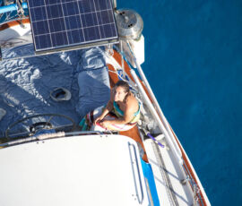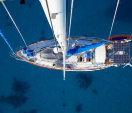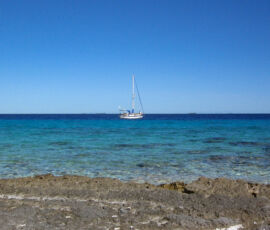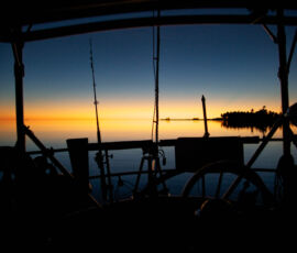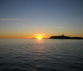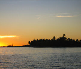 We had two days of perfect calm, where the water went glassy; each night the stars were clearly reflected in the surface of the water. We were the only ones anywhere. We took the dinghy into the middle of the lagoon to watch the sunset, everything was perfectly still. A bold little 4ft shark circled the dinghy as if he was going to do something about it. I cannot give words for the quality of the sunset that evening. We slept in the cockpit, woke to the sun warming us, jumped right into the water to cool off.