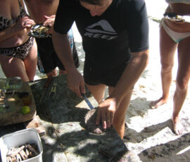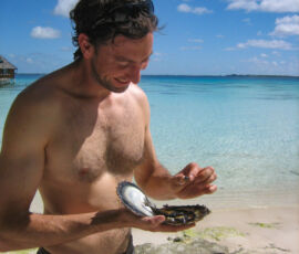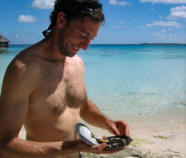 Back to the boat, Matt and Karen are stirring. After breakfast, we take the dinghy to shore, head to the one tiny grocery store to buy a few things. We then visit a storefront for a pearl farm operation. Through Matt and Karen’s French, I inquire about a specific pearl farm I had read. At one specific place, Havaraki Pearls, you can dive for your own oyster, retrieve it, and then crack it open and keep whatever pearl you find. Sometimes, it’s an ok pearl, sometimes as the owner of Havarki explained later, sometimes though rarely, someone will find a pearl worth a few hundred dollars. I may or may not have paid for the fun of getting my own oyster and leaving to chance what type of pearl I might find in it.