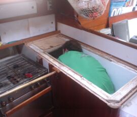 just to let you know what we’re up to . . . Jonny and I are taking the boat apart, starting too many huge projects all at once, and getting way in over our heads. Good times! We are simultaneously rebuilding the fridge, moving the propane locker to build a lazarette hatch, and rebuilding the entire radar arch/bimini/solar panel setup. A few pics: