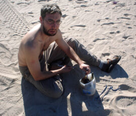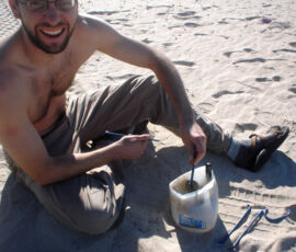 The next morning — marina still closed on account of Christmas — Jon and I got to work cleaning the seacocks on the beach. We discovered that sand + rags + muscle = kinda-like-sandpaper, and polished up two of the seacocks pretty good, greasing up the open/close mechanisms until they were smooth.