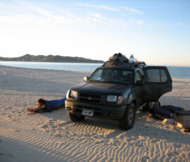 So Jon and I rolled in to San Carlos after midnight Sunday night (Matt’s flying/bussing in tomorrow), and slept on the beach, which turned out to be much frostier than we expected. We slept well after 15 hours of driving, and woke at first light, eager to finally start getting our hands dirty with all kinds of satisfying repair jobs. After quick breakfast burritos, we headed over to the marina office, arranged to have Syzygy moved to the work yard, and immediately set to removing the seacocks. Three hours later, at 2pm, the marina closed, since it was Christmas eve. Jon and I had only removed 3 of them.