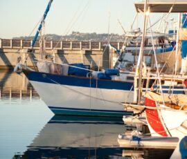 Notice that it appears our boat is leaving the slip. Don’t be fooled: I pushed the boat half out of the slip in a desperate attempt to shine a little bit more sunlight on the deck. Unfortunately, the boat’s little trip half out of the slip and back in was the farthest it has travelled in months.