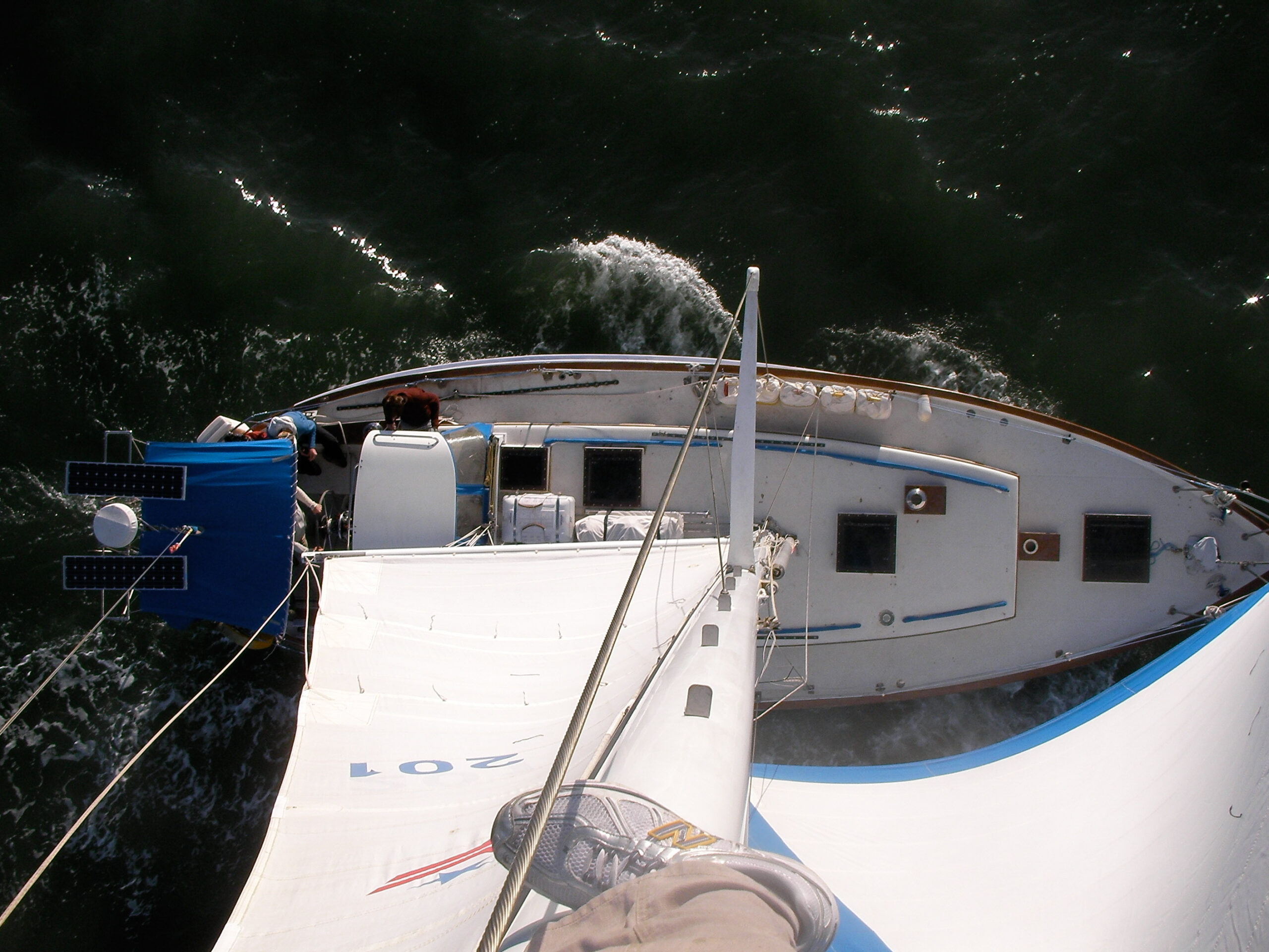 And just like that, a small repair job turned evolved into damage control and then evolved into crisis management, and now there’s a giant yellow patch on the port side of the deck, and no tracks with which to fly the jib…