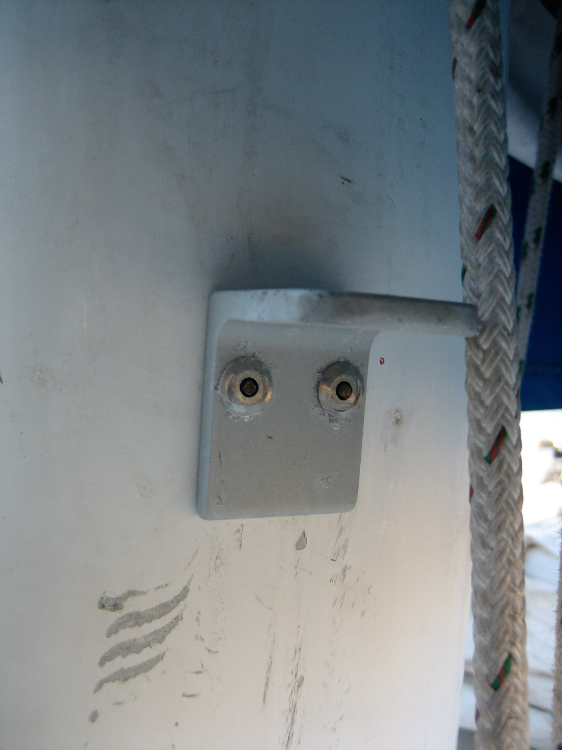 For the last couple of months I’ve been on a mechanical crusade to make sure everything screwed through the deck of our boat is screwed through the deck properly. By properly, I mean in a very particular way, which I’ll get to. But first: the deck is sandwich-like, in that it’s made of two pieces of fiberglass with a layer of balsa wood in between. It’s like a sandwhich made of matzoh and cream cheese. This design has its ups and downs. One down is that if you apply a lot of force, it’s not too hard to squish the sandwich, which weakens it. Another down is that if you drill through the sandwich and don’t seal the hole just right, water that leaks in ends up rotting the balsa wood (further reducing its strength) before it leaks all the way into the boat. It’s strange, but if you have a leak, you want it to actually leak.