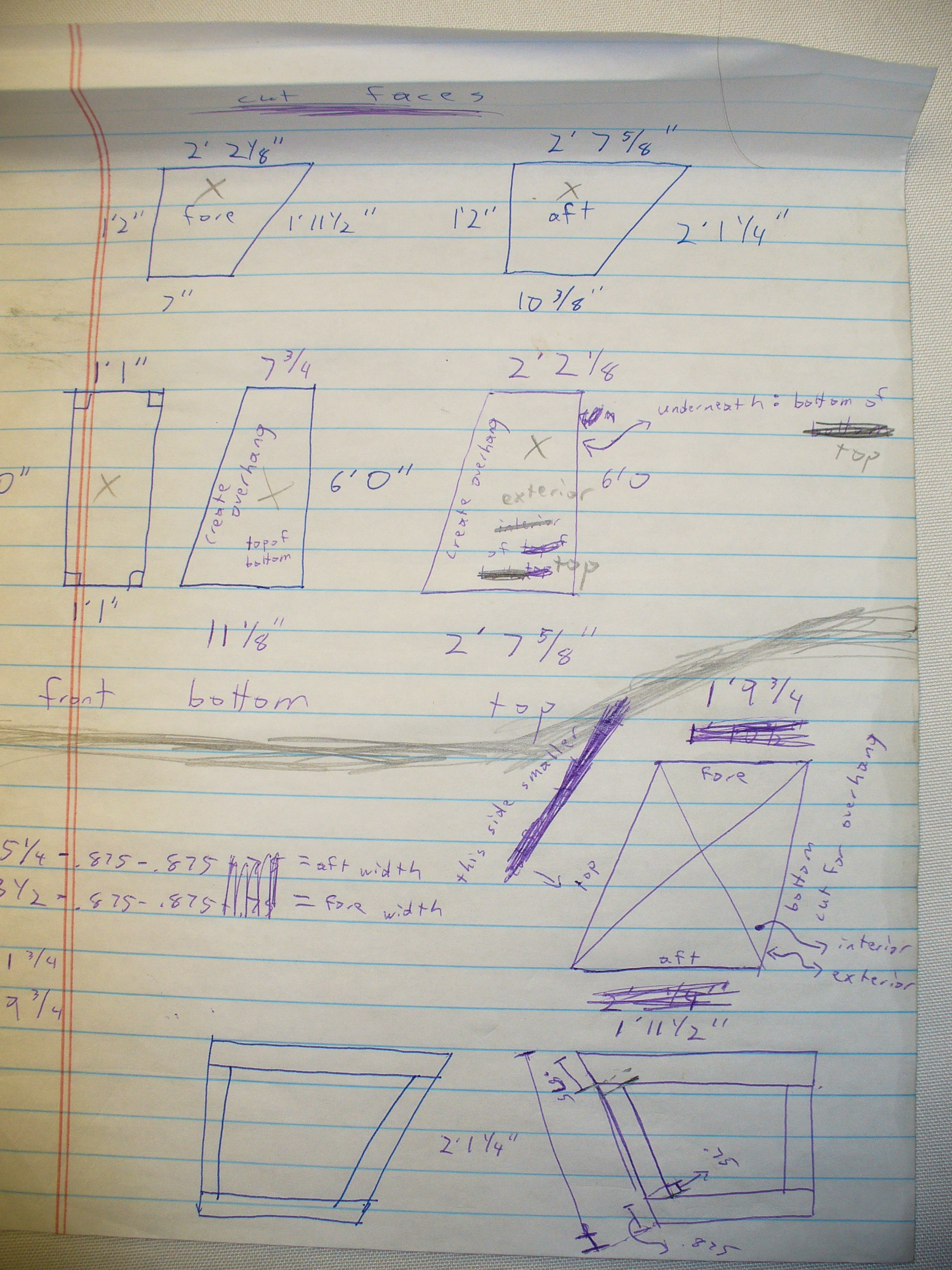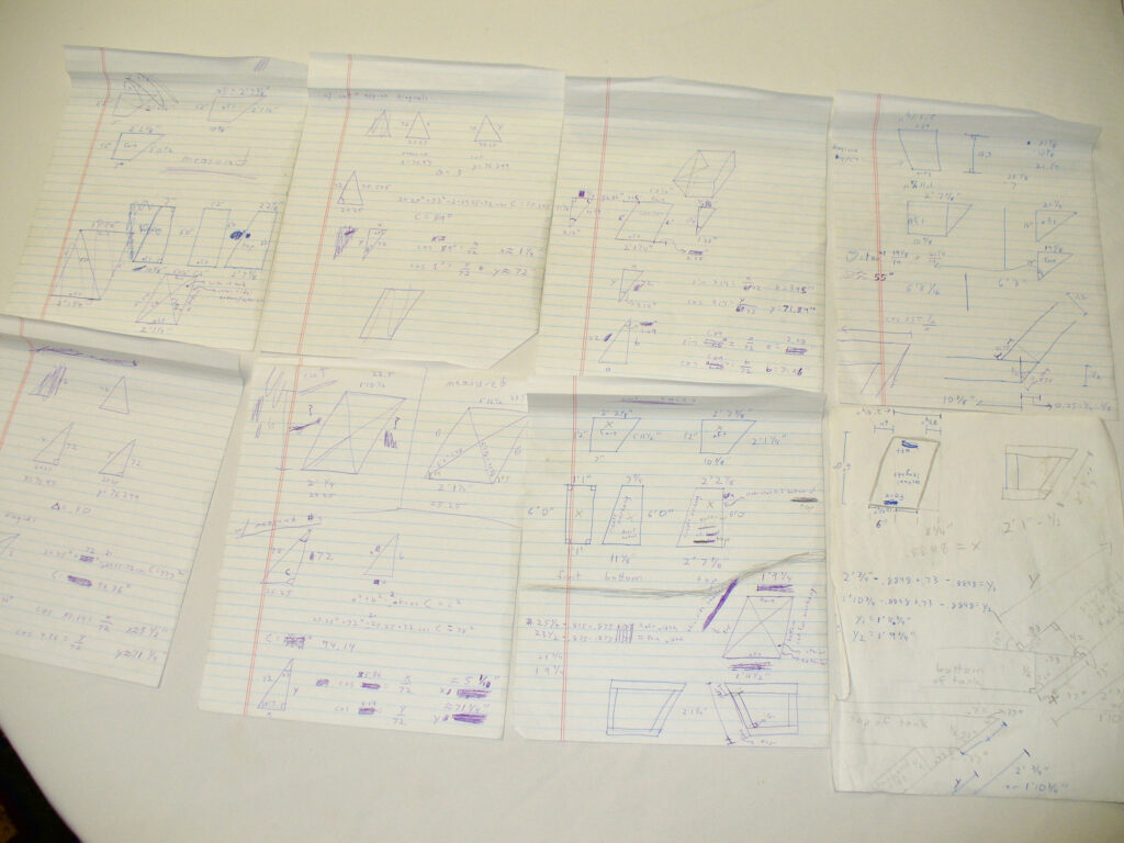 A new day arose, and with it, the need to begin cutting the plywood. Before making those first cuts, we invoked that old saying, “measure twice, cut once,” and double-checked our measurements. What should have been a simple operation became a 20-minute math discussion, with errors discovered left and right. Once again, Jonny once implored us to consider his suggestion, but he was overruled by us math crazies. More measurements were made, more calculations completed, and then, finally, all three of us settled on a solution.