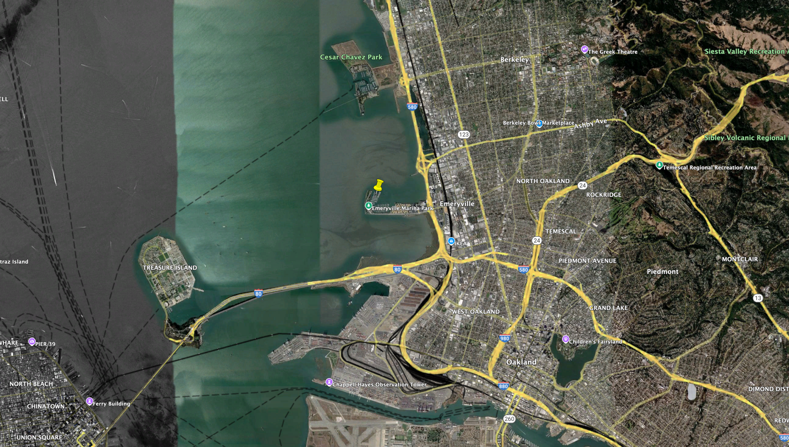 It started when I stopped by the Emeryville Marina two weeks ago, and found a slip for us. I’m not much of a believer in omens, but I took it as a sign when the skies cleared and a double rainbow came out just as I rolled in on my bike. I was drenched, and my glasses were all foggy/drippy, but I was smiling. I could imagine Syzygy, sitting there in the rippling water, with a view of the whole of San Francisco bay — From Mt. Tamalpais to the Golden Gate Bridge to the city to Treasure Island to the Bay Bridge. It would be perfect.