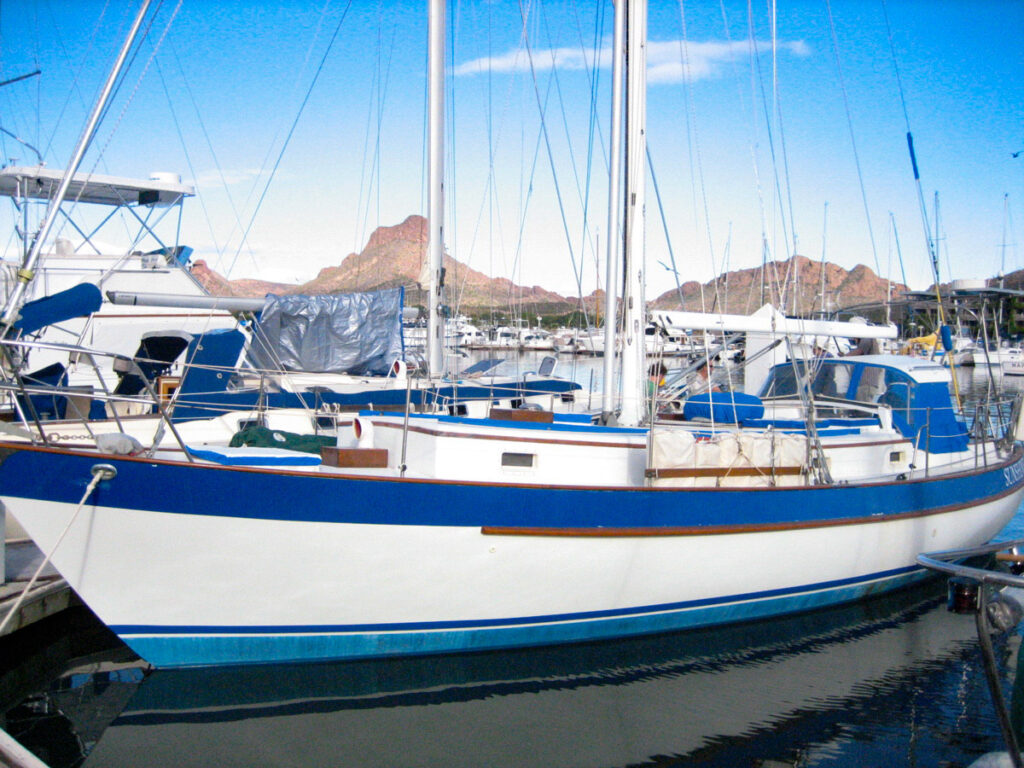 In the evenings, we met up with Capn’ Bob, a vibrant 72-year-old Valiant-40 owner and spinner of fine sea tales, and Mark Schneider, a similarly spirited owner of another spiffed-up Valiant-40. After somewhat hectic days, these two confirmed that we were making the right decision. (The beers might have helped, too.)