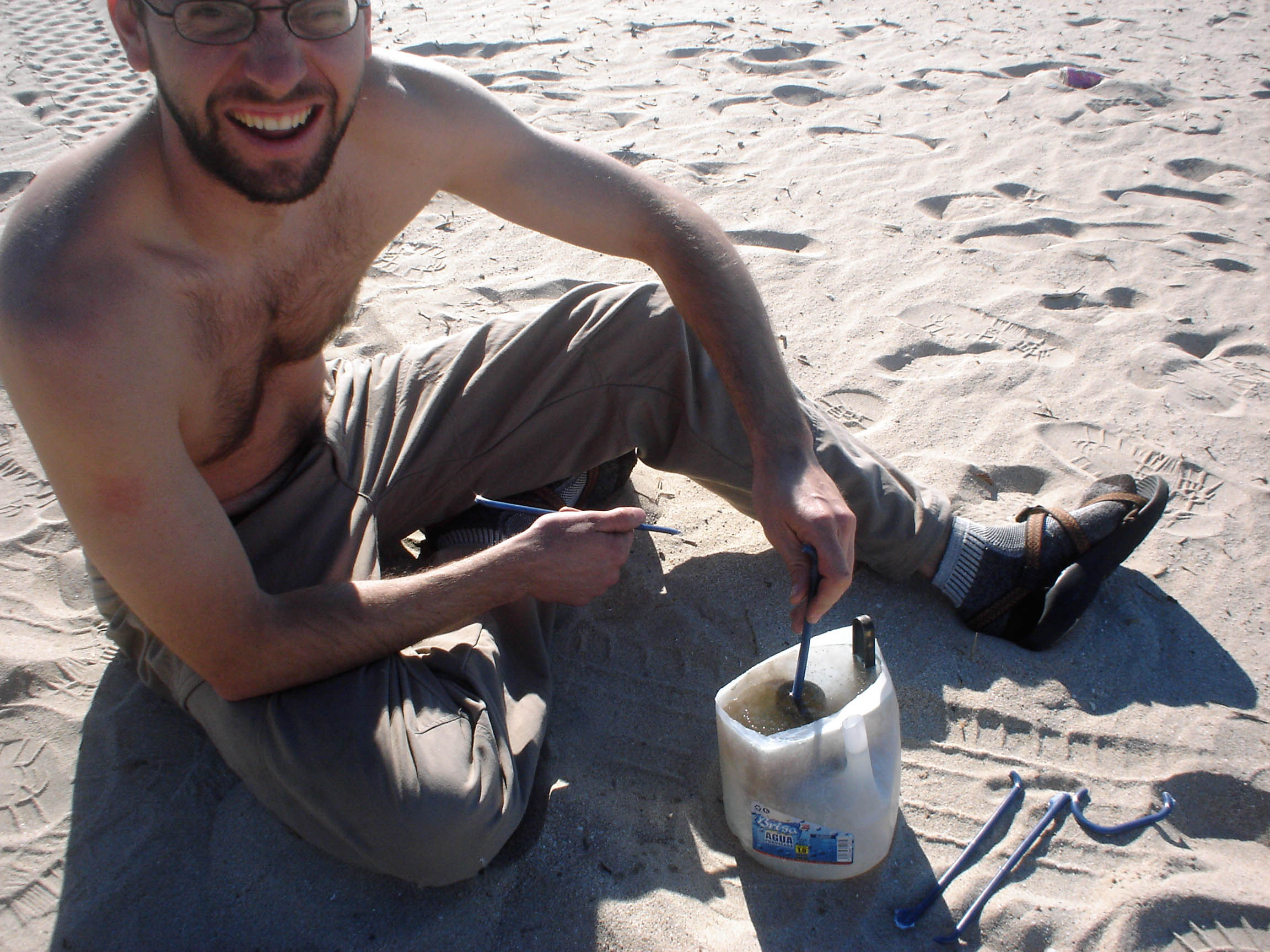Hours later, the broker returned. Matt and Jon packed up their stuff, grabbed a bag of trash, and jumped in the broker’s car. 10 minutes later, back at the office, we were signing important papers, to the tune of I-hereby-agree-to-pay-$60,000-for-that-there-sailboat type of papers. So we sorta forgot about the contents of that trash bag. Actually, Jon remembered, but thought it inappropriate to deposit our piss-bottles in our broker’s trash can. He’s got class, Jon does.