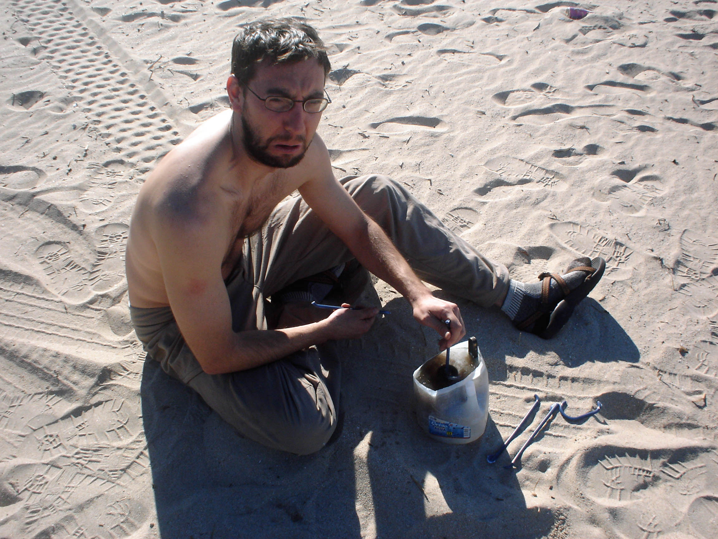 So Jon did what any climber-turned-sailor would do: he went back below deck, grabbed one of those plastic water bottles, and pissed into it. Matt did the same thing. So did I.