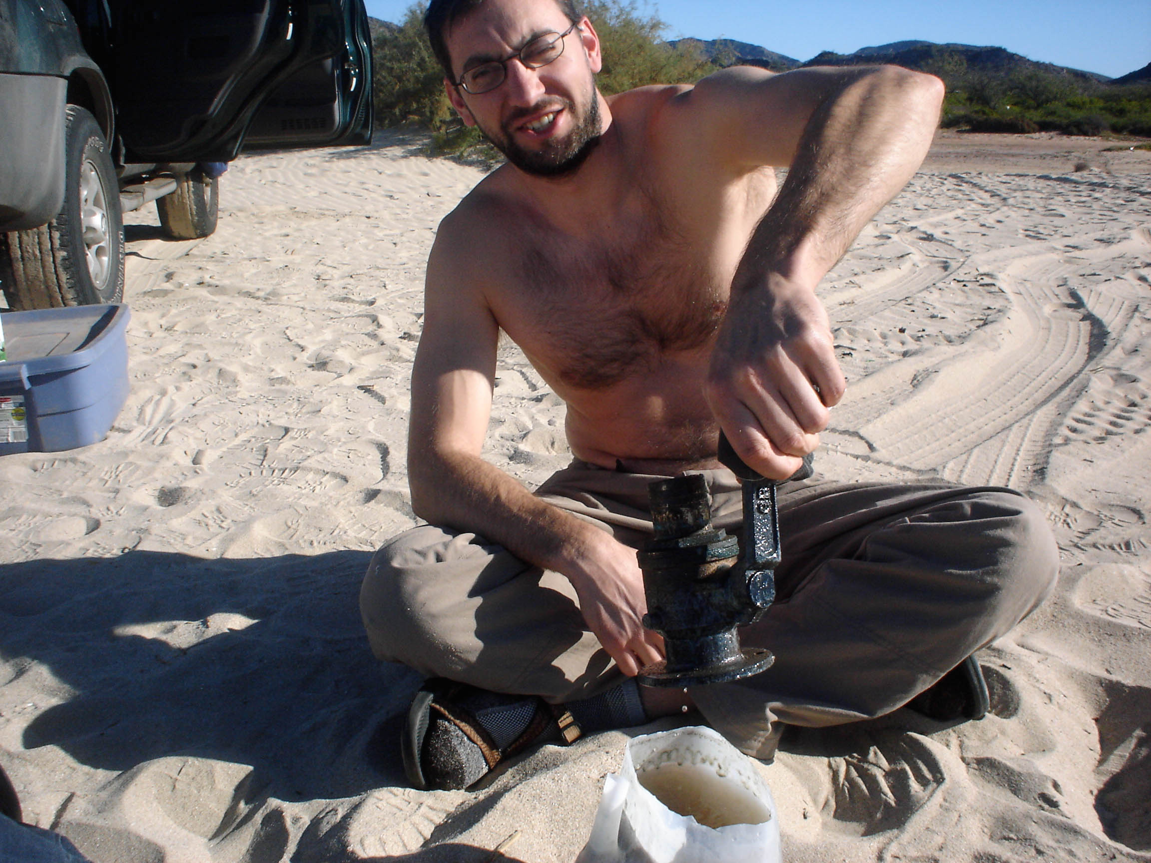 So Jon and I rolled in to San Carlos after midnight Sunday night (Matt’s flying/bussing in tomorrow), and slept on the beach, which turned out to be much frostier than we expected. We slept well after 15 hours of driving, and woke at first light, eager to finally start getting our hands dirty with all kinds of satisfying repair jobs. After quick breakfast burritos, we headed over to the marina office, arranged to have Syzygy moved to the work yard, and immediately set to removing the seacocks. Three hours later, at 2pm, the marina closed, since it was Christmas eve. Jon and I had only removed 3 of them.