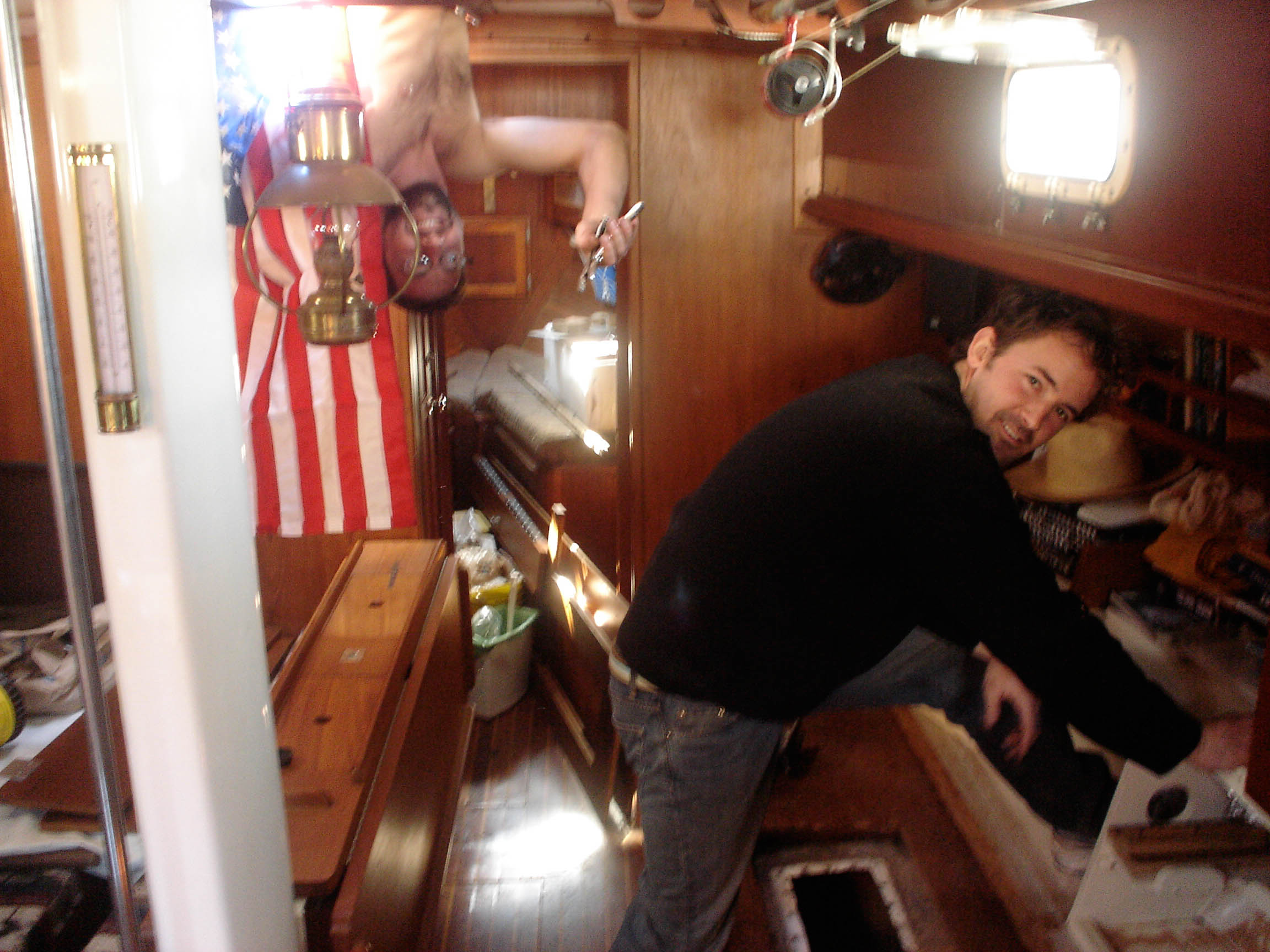 Throughout the day, whenever we bumped into Richard, we chatted about repairs and maintenance. We told him our plan: 1) remove and service the seacocks, 2) fix the leaky packing-gland (the waterproof seal around the propeller shaft), 3)remove the leaky water tanks and rebuild new ones, and 4)remove the old, crappy toilet.