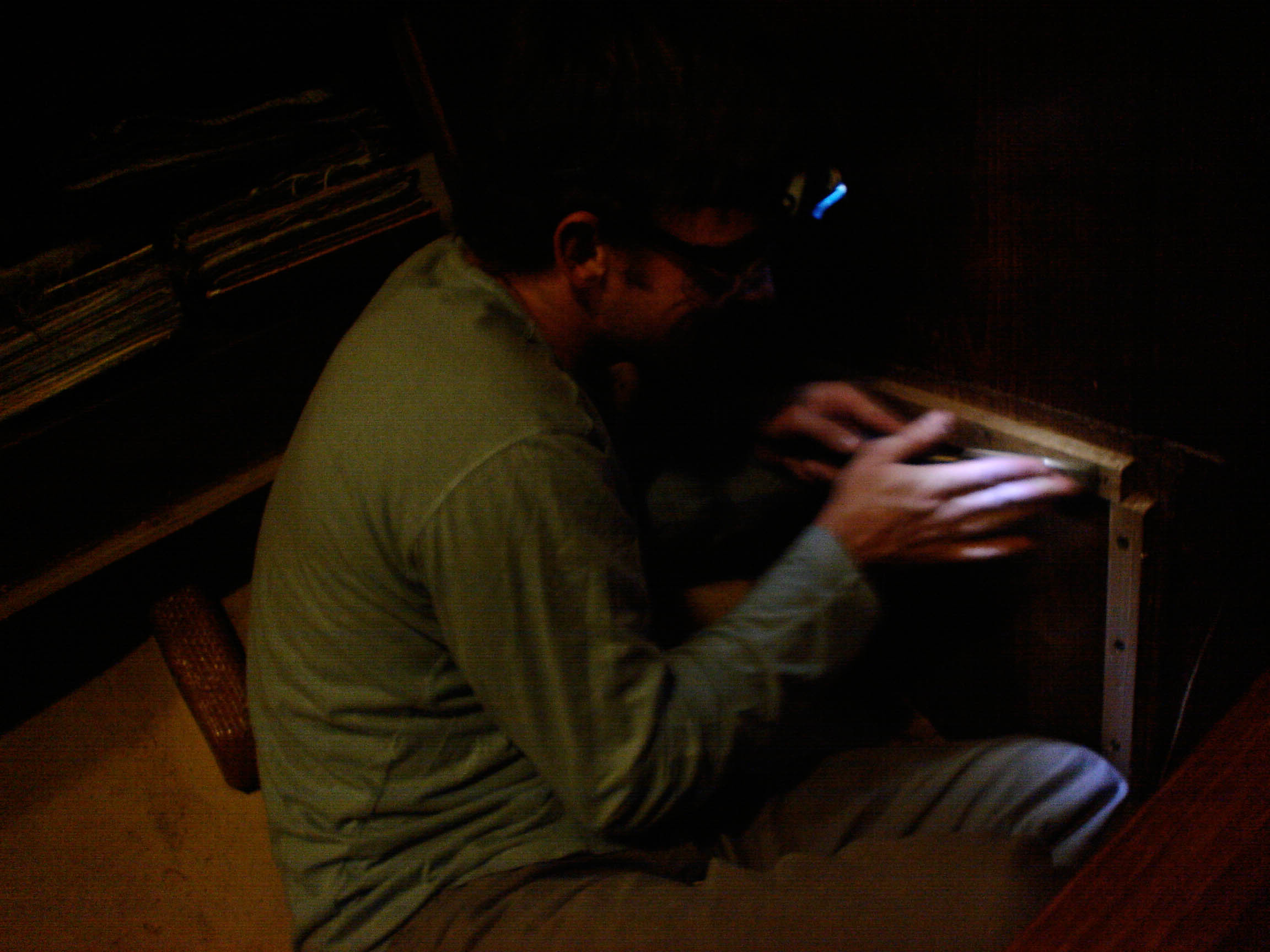 At this point I am faced with a dilemma. Continue searching, or, since it is so close, try and modify this piece. Well, since searching more would be boring, and modifying it involves using power tools, the choice is obvious.. I get the drill, screw in the piece of metal to a block of wood. Next, I get the grinder and begin grinding away at the metal. I’ve never used a grinder before, and this is kinda fun. Fifteen minutes of getting tools, tool use, and cleaning up yields what I hope is a usable piece of metal. I test it and it fits! Mini-victory! Now, I get the vice grips, chomp them down with all my might and insert my homemade screwdriver-apparatus into the head of the pin. Ten minutes later, and the pin is finally removed. At last. 80 minutes after starting, I’ve removed one pin. Victory, albeit over one pin. There are many more parts to deal with on this trip and I think they each will individually take 80 minutes of attention. And this is how we’ve worked non-stop yet accomplished seemingly nothing.