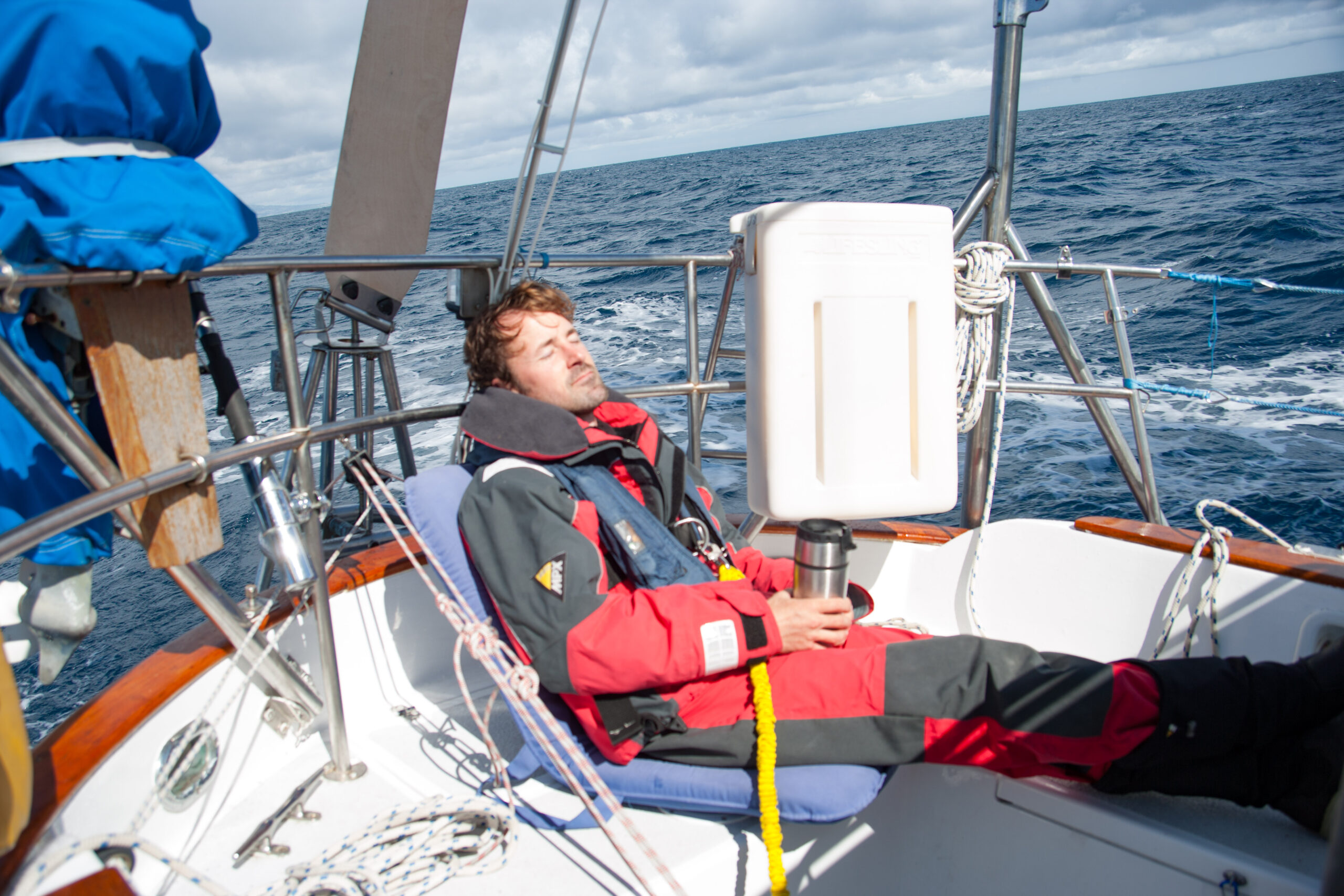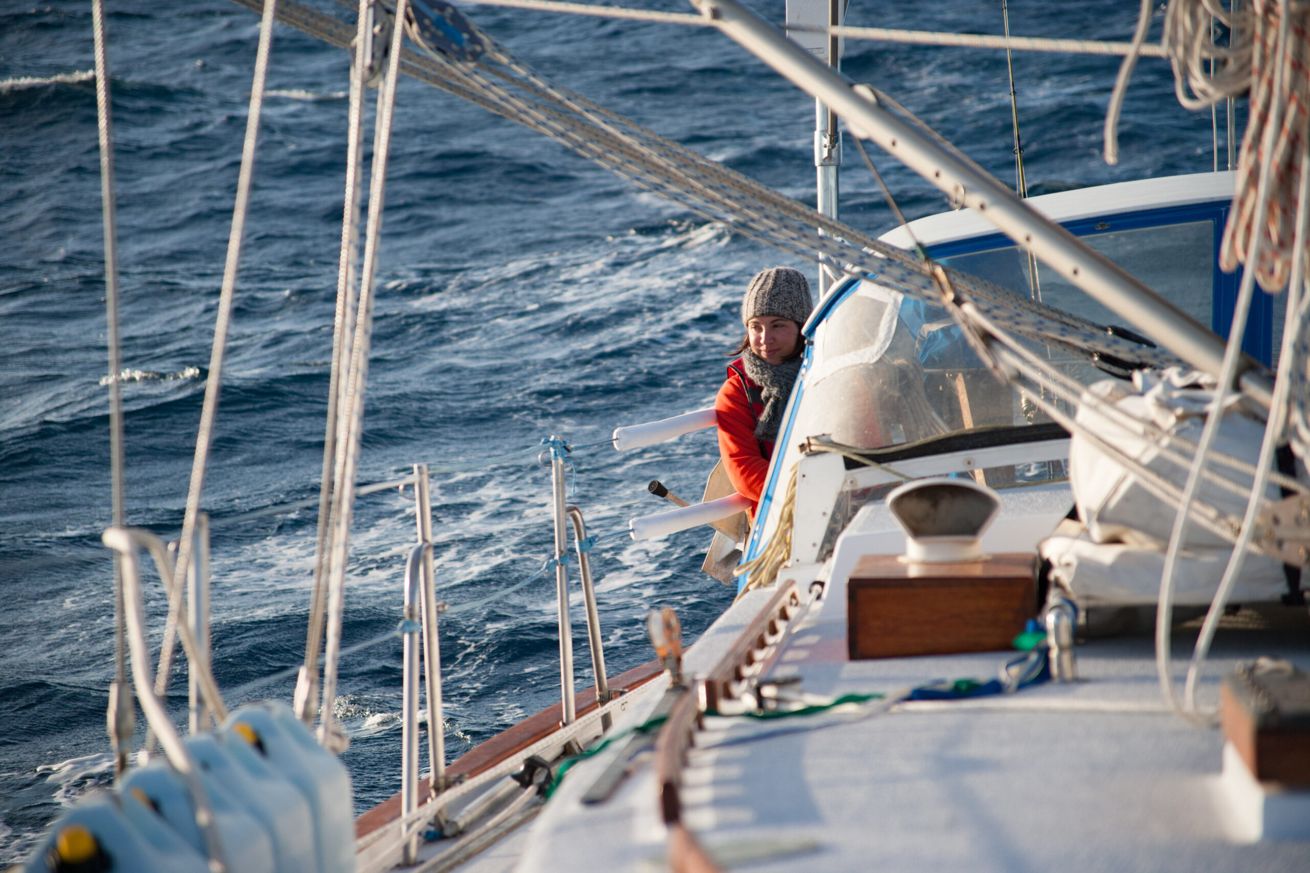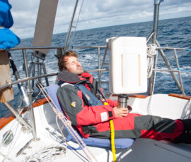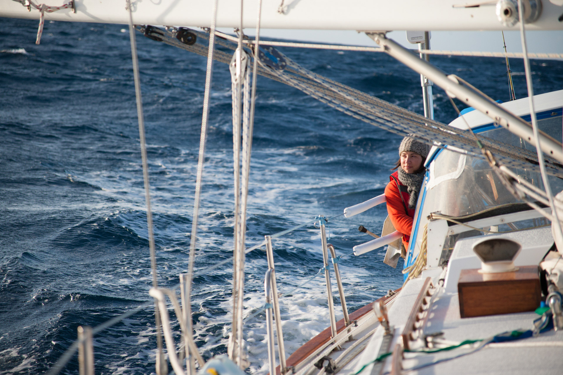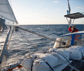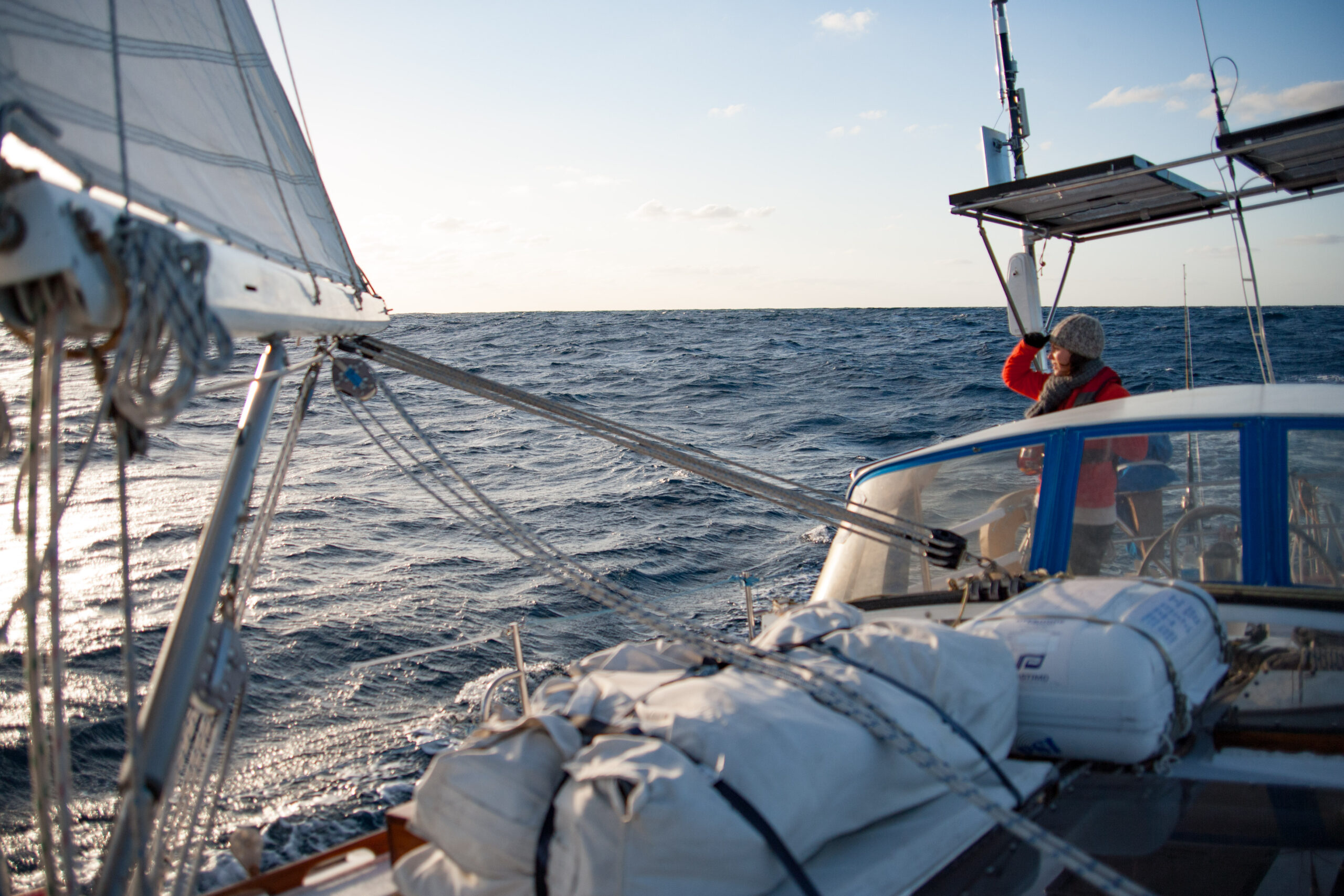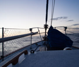 This time it worked out perfectly fine for us. We hove to under double-reefed main and staysail, the motion of the boat became relatively calm, and we slept the night away (in turns). The boat still fore-reached at about a knot, so I still want to work on that a bit, but as it turns out the hove-to position was still stable and calm, so perhaps I was being a bit perfectionist about it before. If we ever experience a real storm we’ll see.