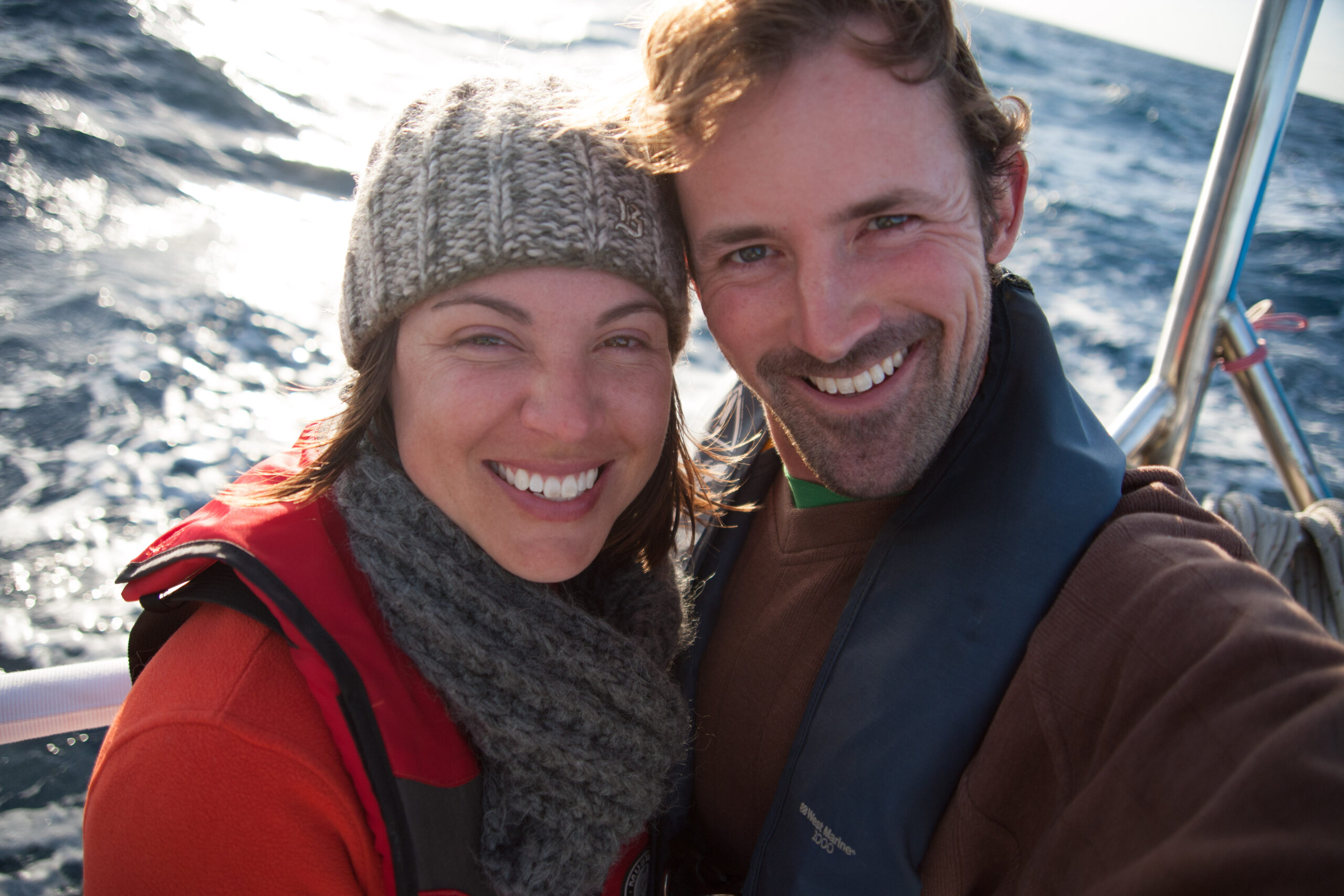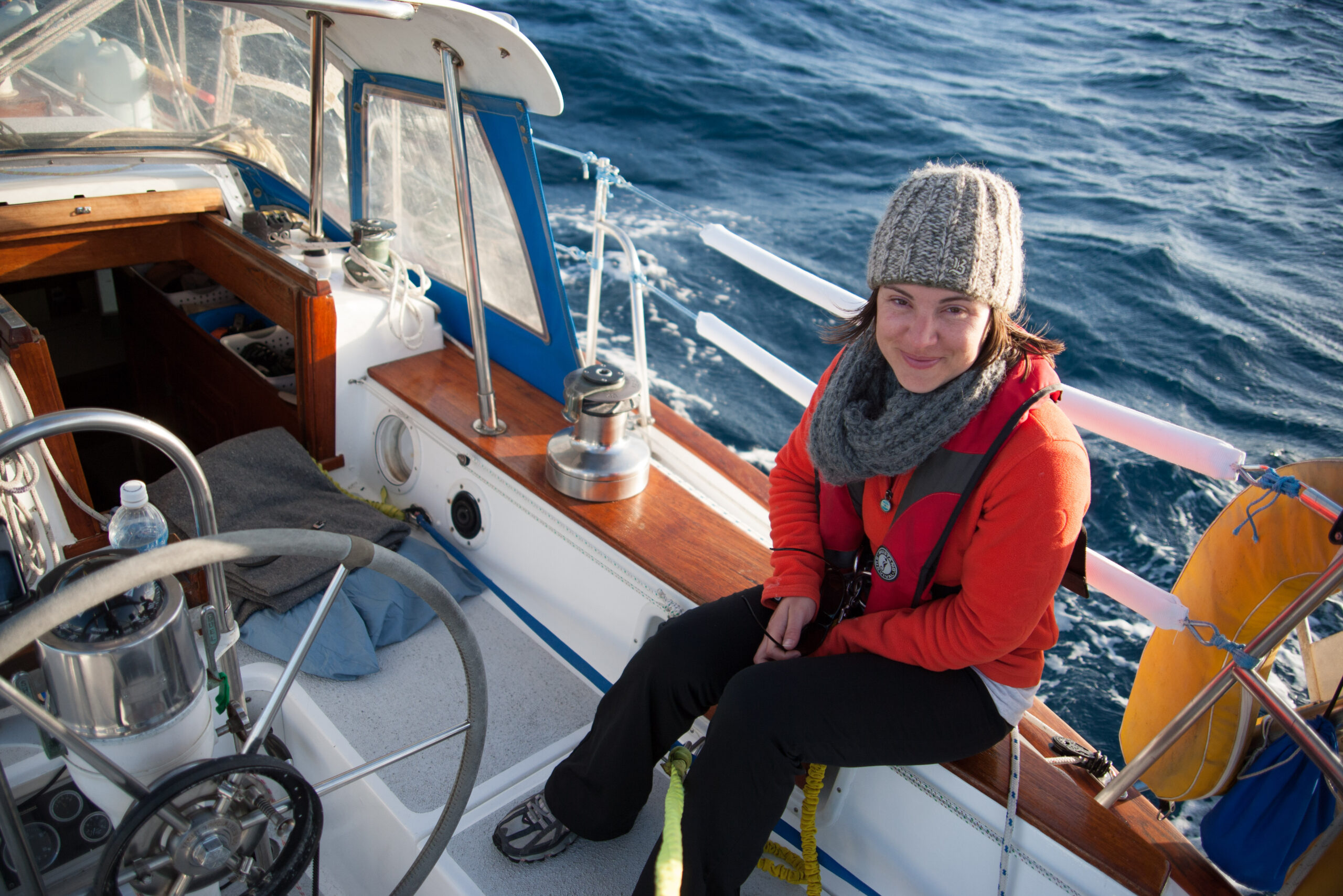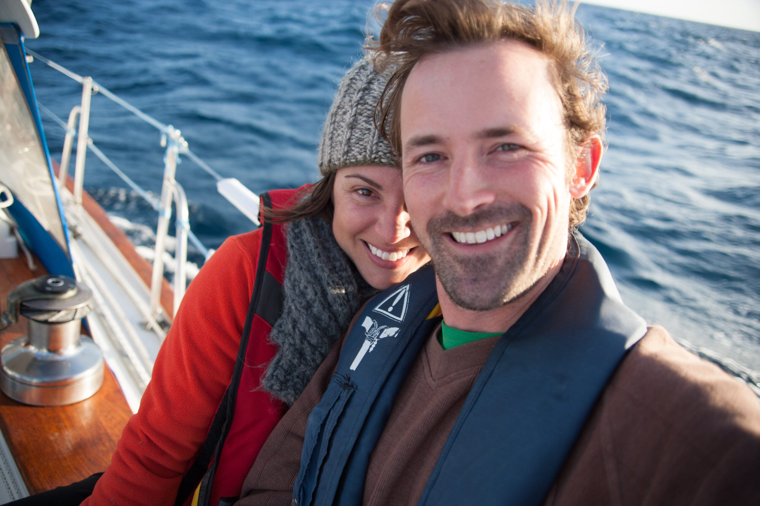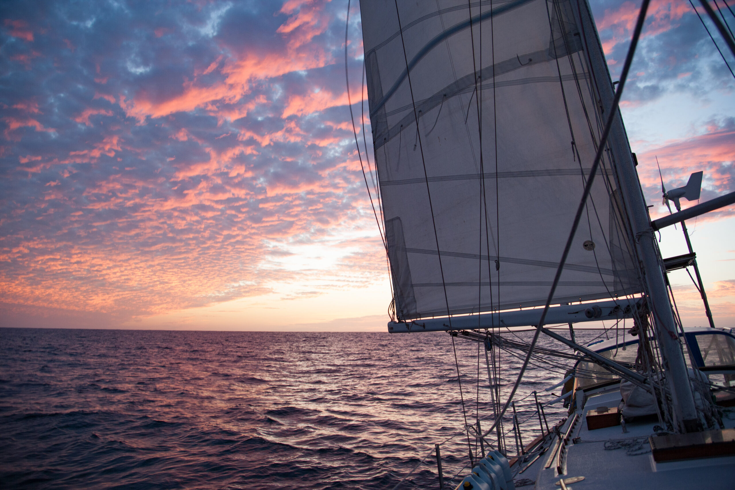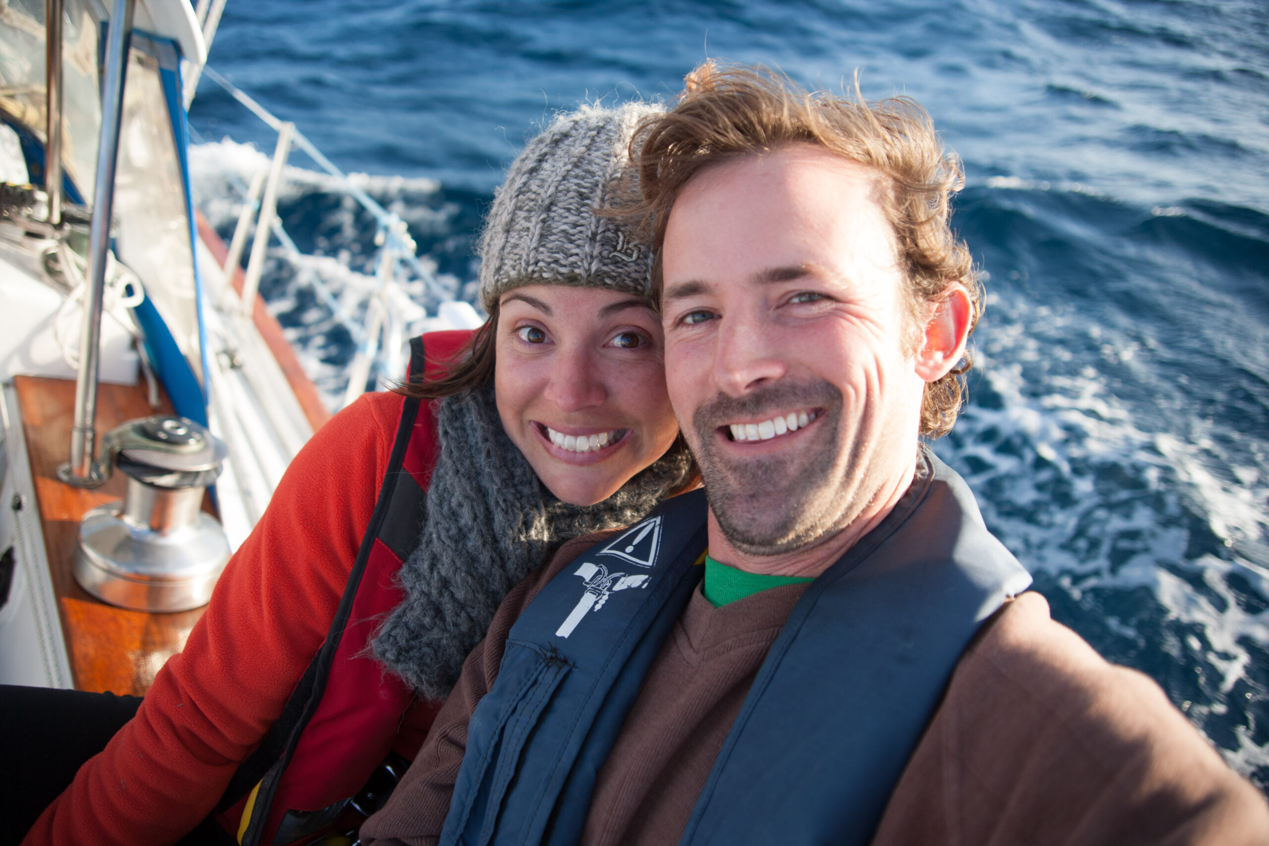 As it approached, the wind shifted around from behind us–where it is convenient for the wind to come from—to directly ahead of us–not so convenient (though expected). Still keen on making forward progress, however, we started beating into the wind. For the first five hours or so of windward sailing we were ecstatic to discover that it was our most comfortable point of sail so far: the wind waves had not yet built, so were were sailing smoothly into the wind with a following sea.