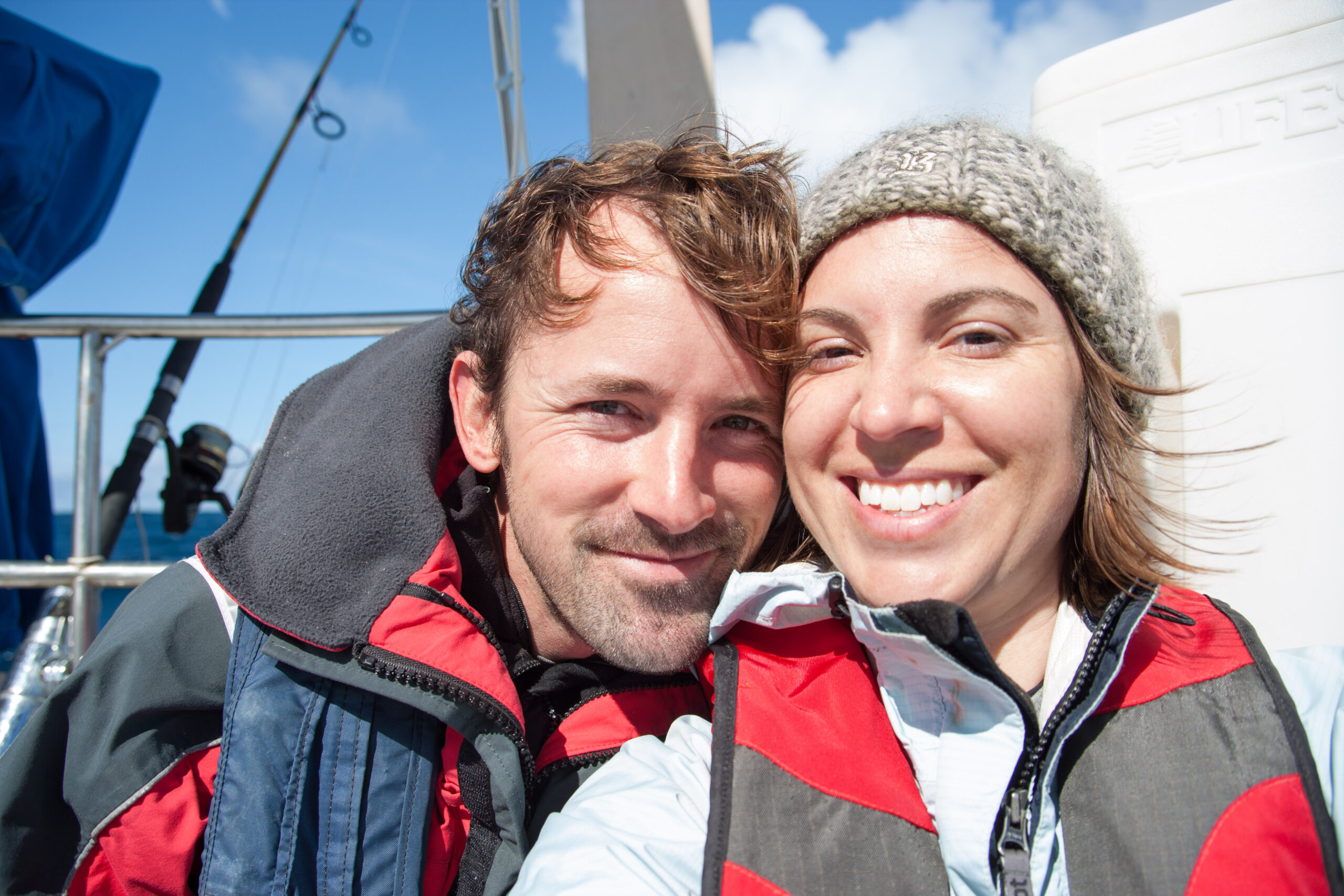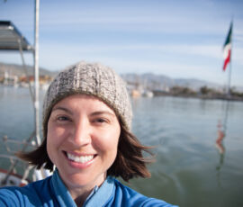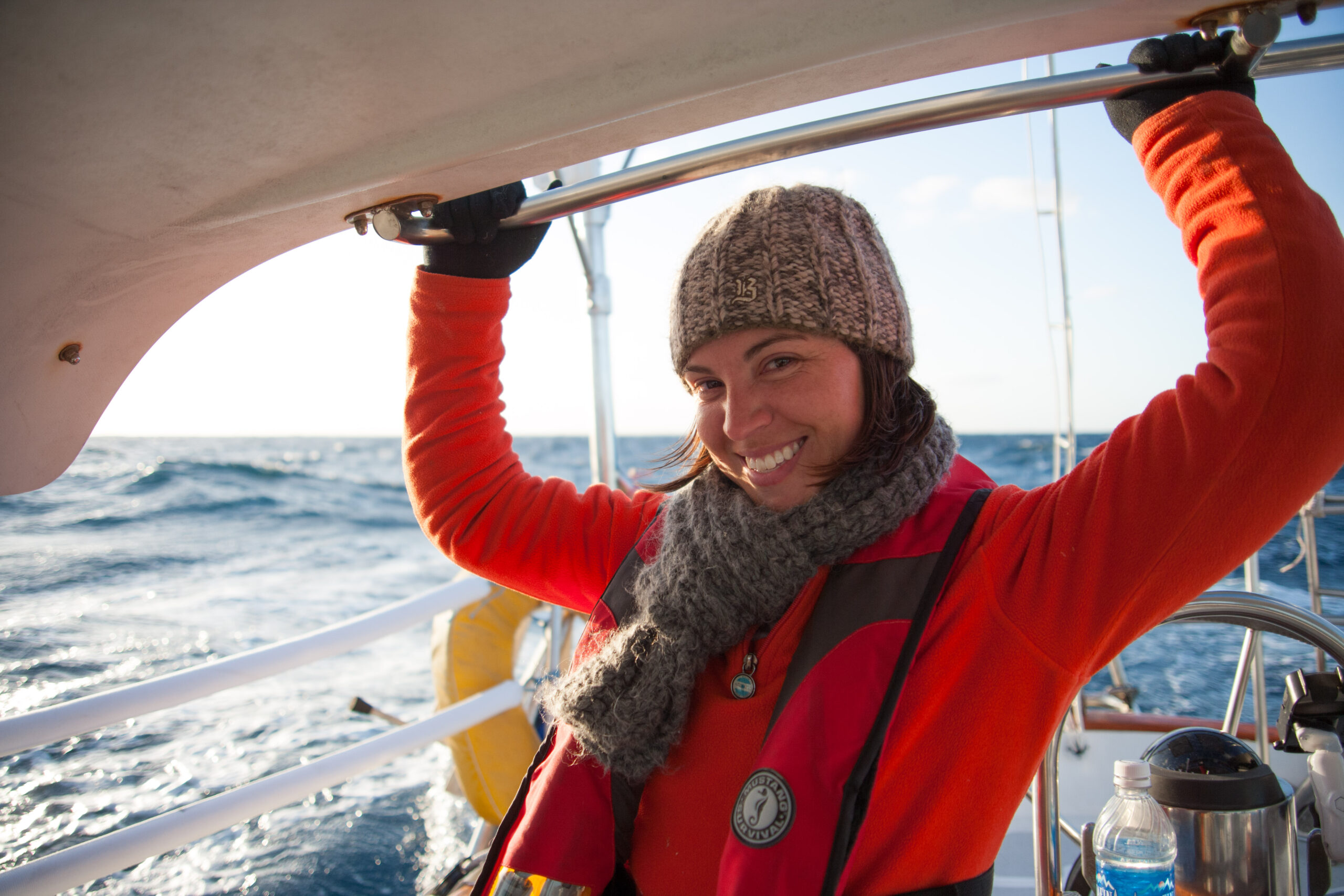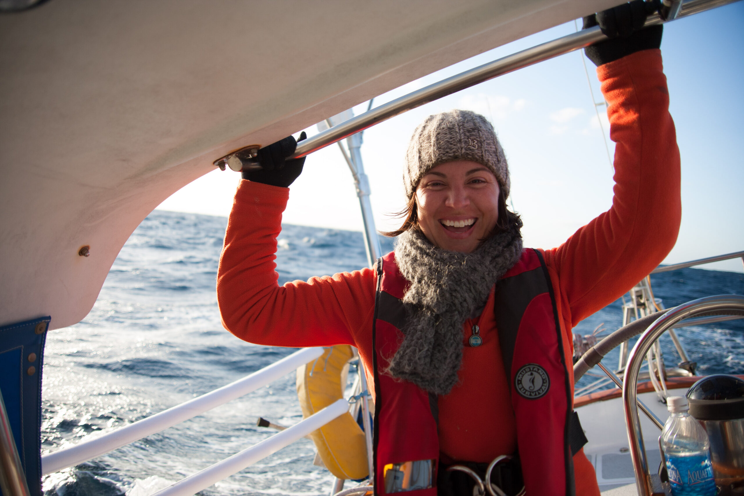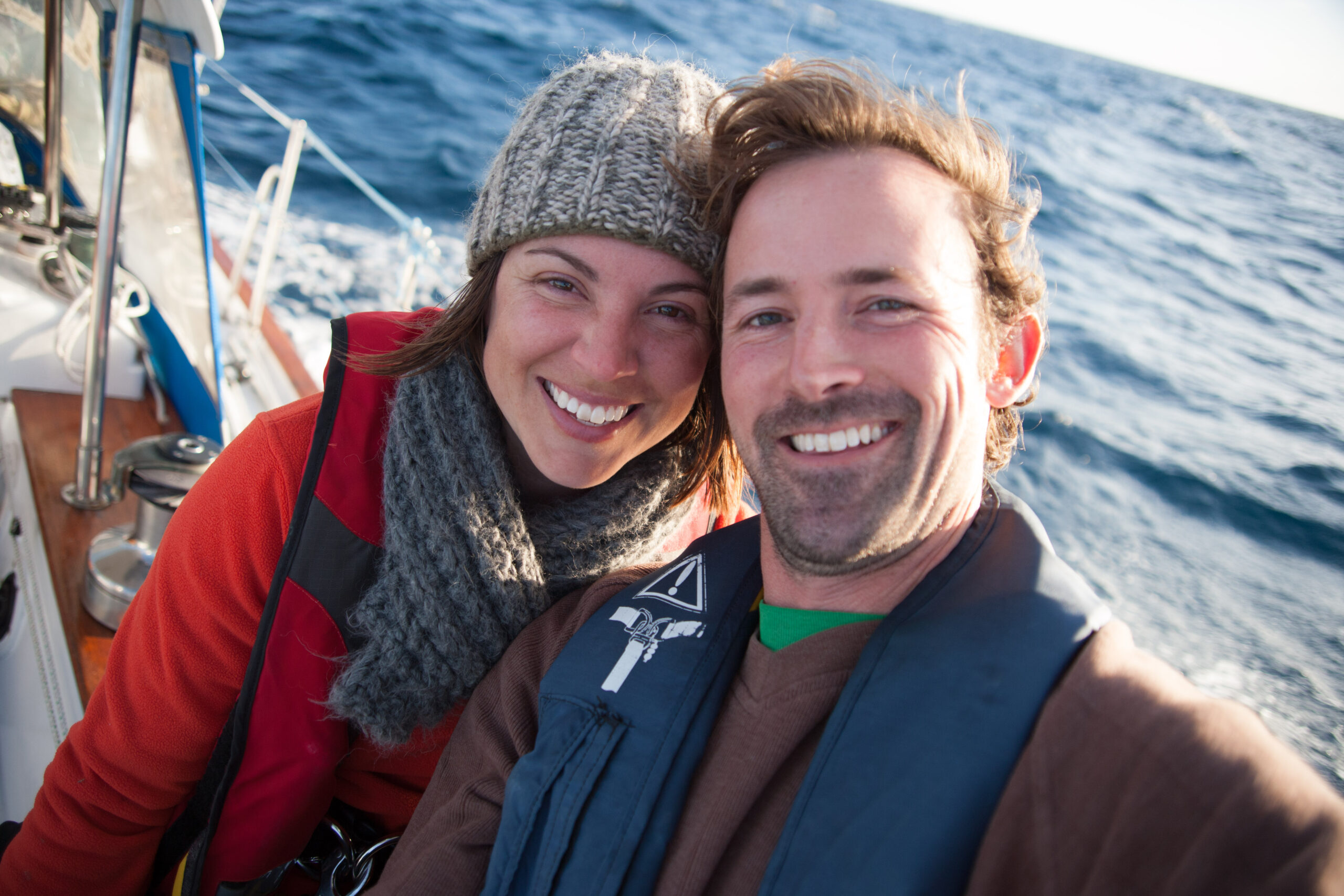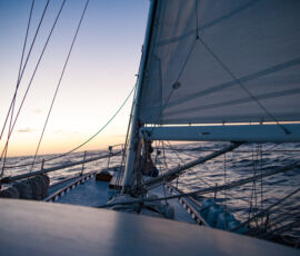 As it approached, the wind shifted around from behind us–where it is convenient for the wind to come from—to directly ahead of us–not so convenient (though expected). Still keen on making forward progress, however, we started beating into the wind. For the first five hours or so of windward sailing we were ecstatic to discover that it was our most comfortable point of sail so far: the wind waves had not yet built, so were were sailing smoothly into the wind with a following sea.
