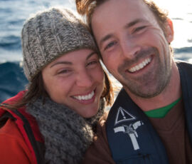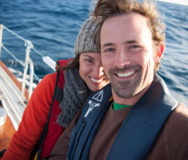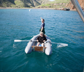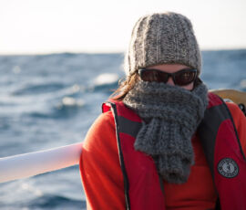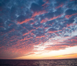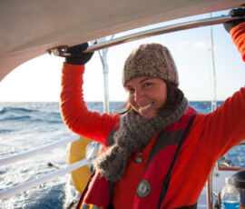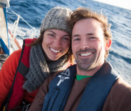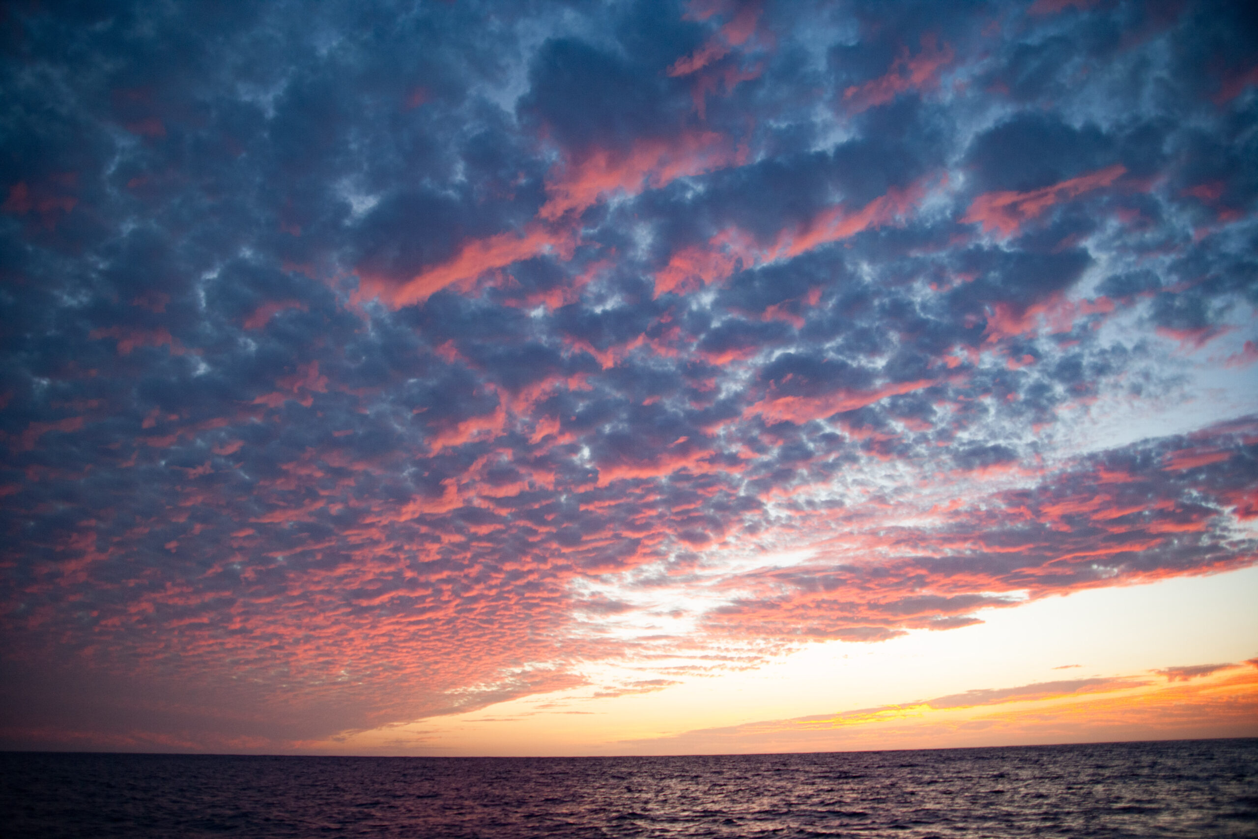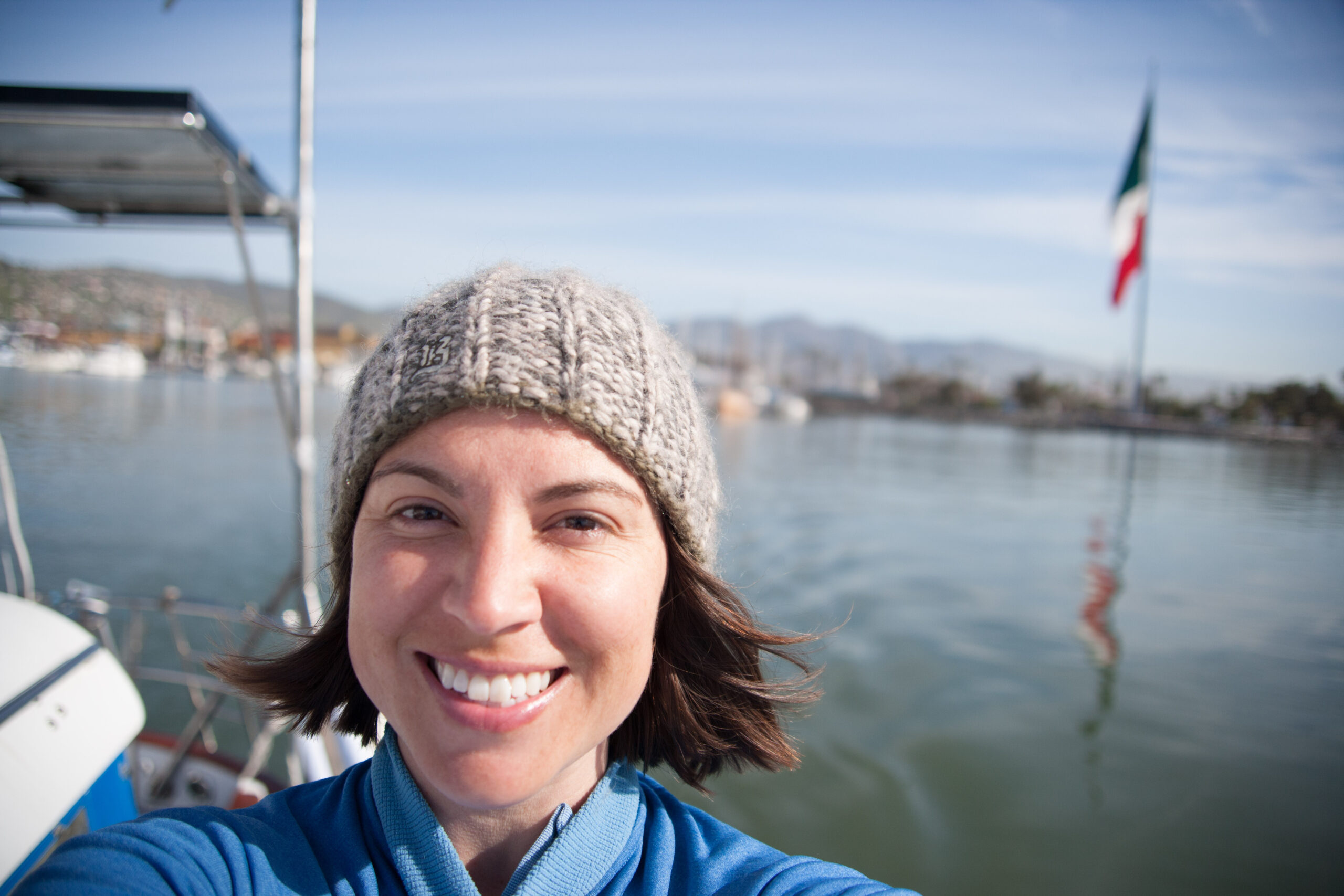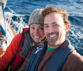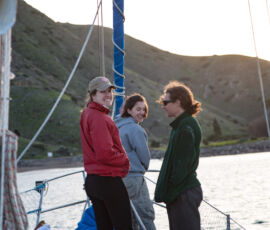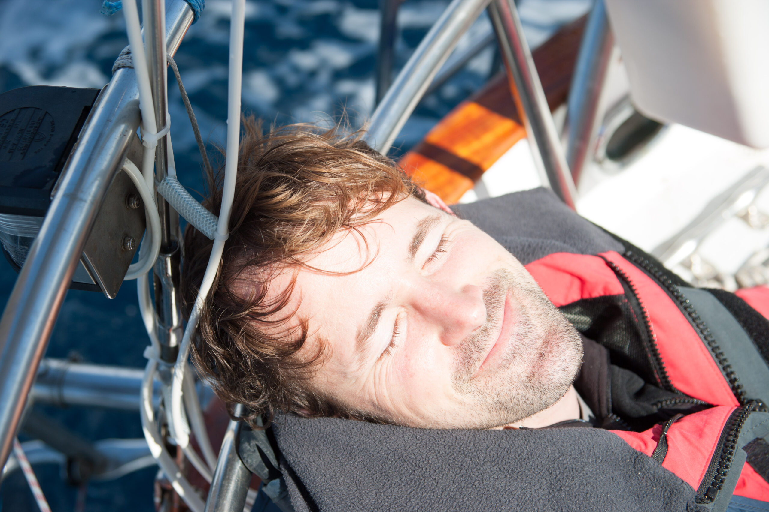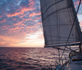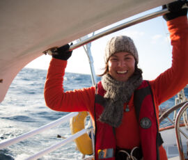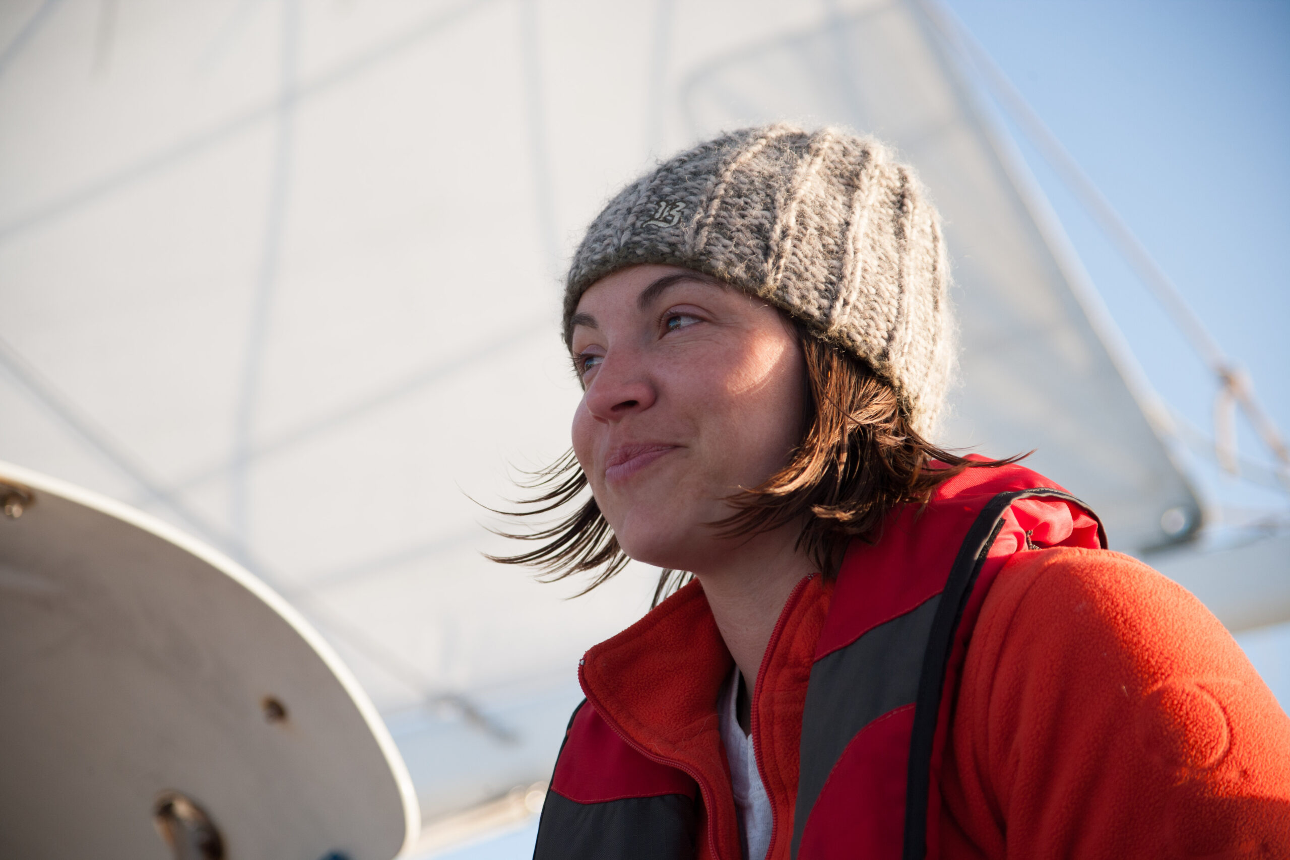 As it approached, the wind shifted around from behind us–where it is convenient for the wind to come from—to directly ahead of us–not so convenient (though expected). Still keen on making forward progress, however, we started beating into the wind. For the first five hours or so of windward sailing we were ecstatic to discover that it was our most comfortable point of sail so far: the wind waves had not yet built, so were were sailing smoothly into the wind with a following sea.