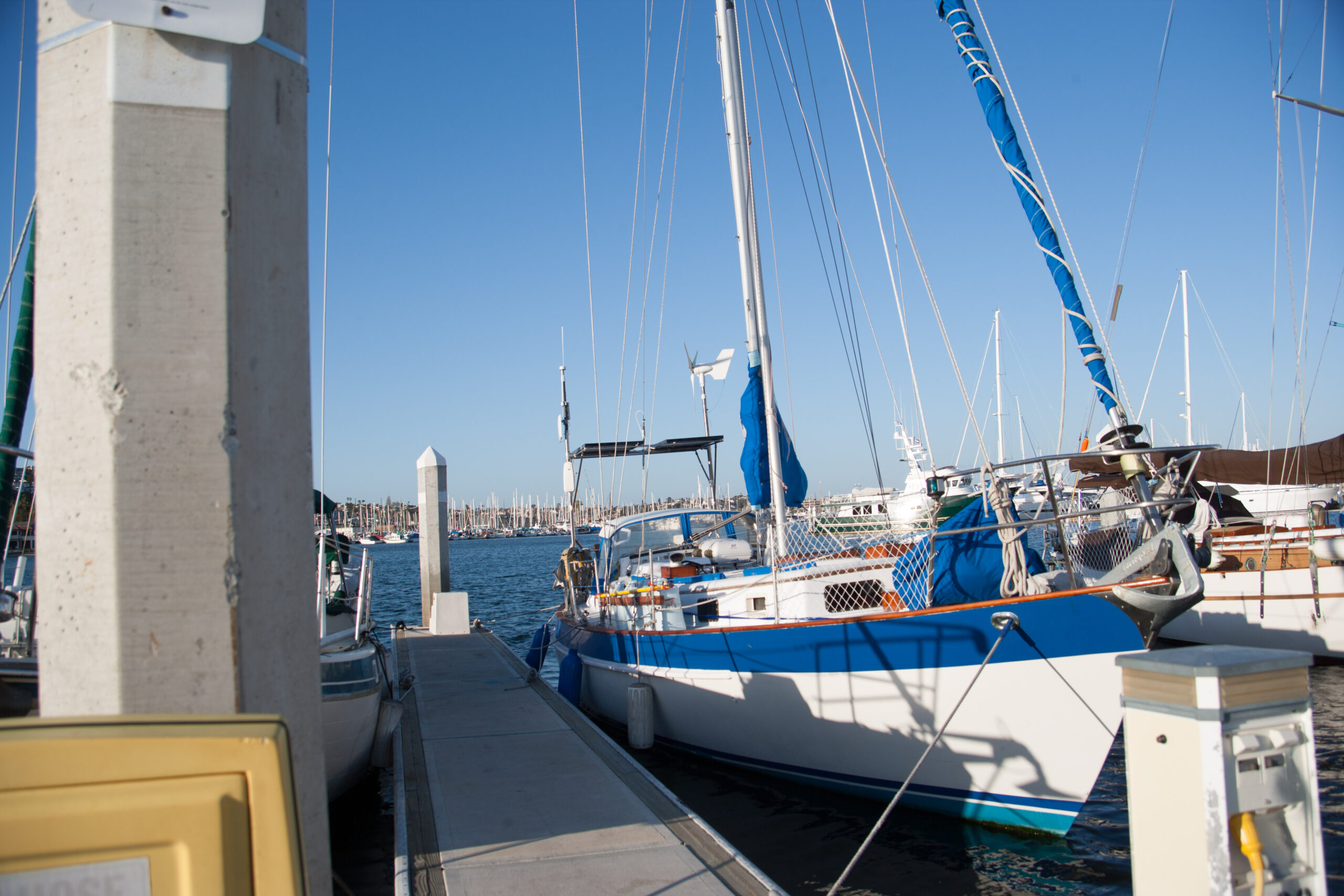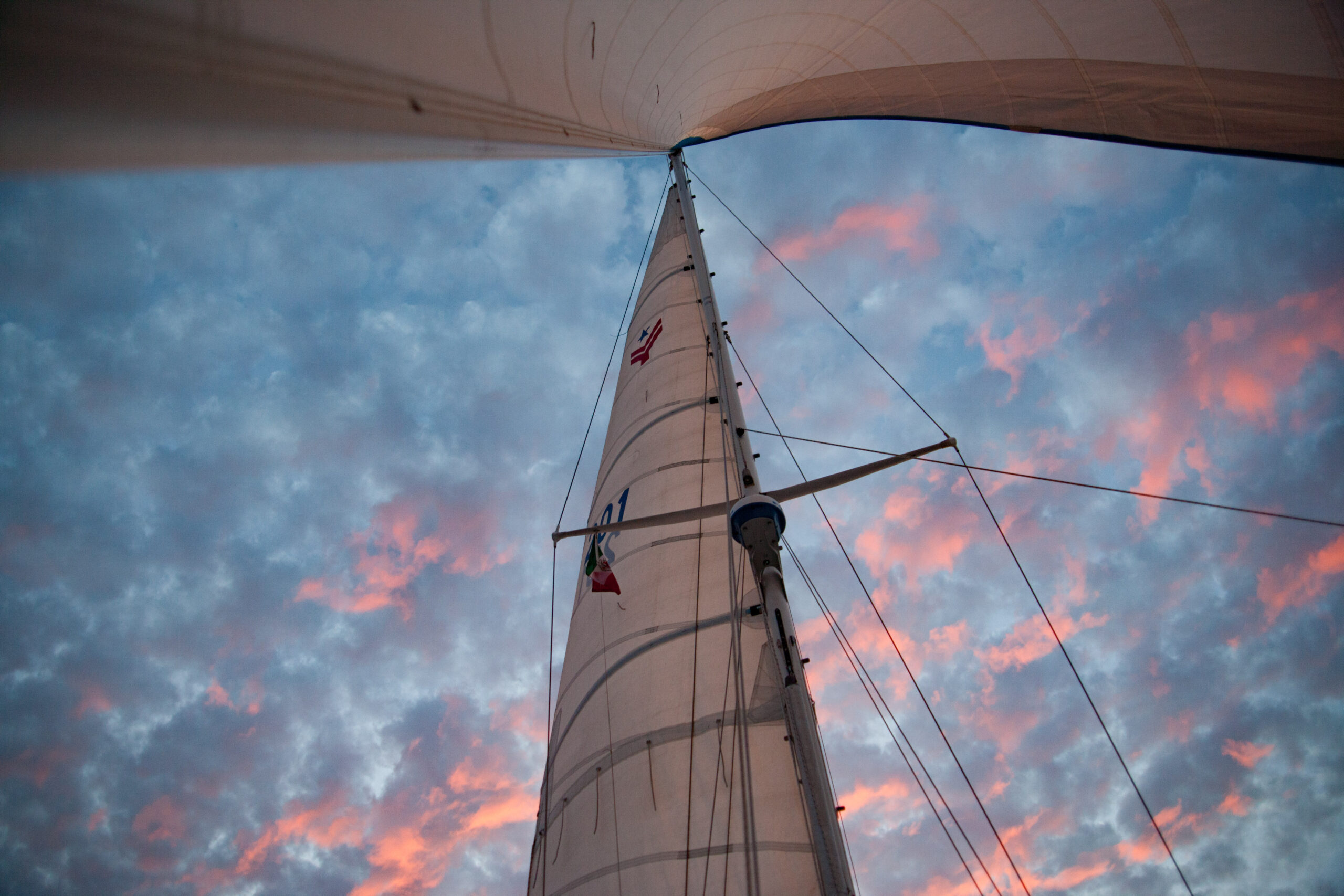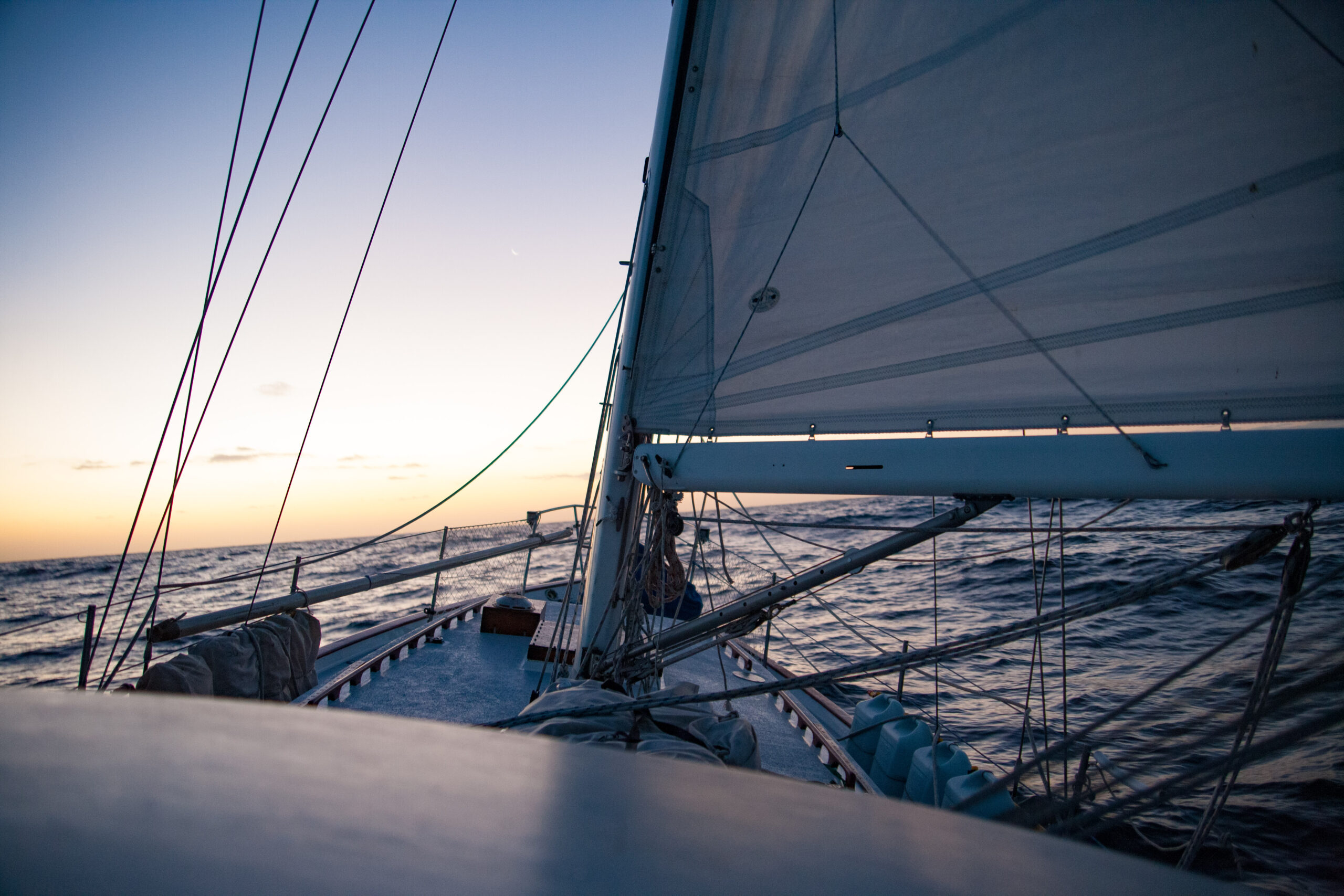 We decided that we should heave to, and we also decided that we should get it right this time. The last time we tried to heave to while experimenting in the dark prior to entering san diego, I was dissatisfied with our setup. Specifically, I was annoyed that we were unable to completely stall the boat.