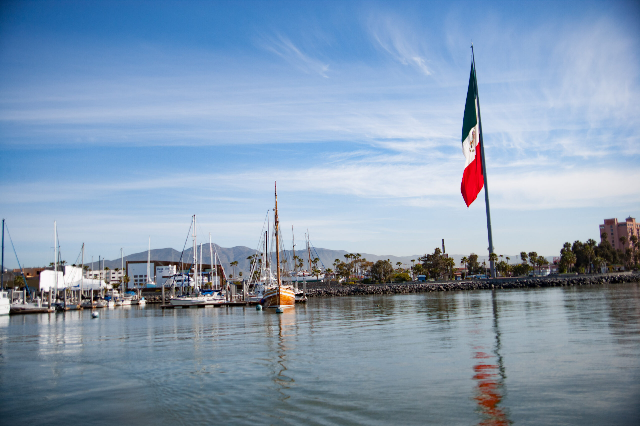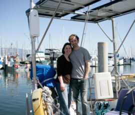 Before leaving Ensenada I pulled in a weatherfax over the SSB (our shortwave, long distance radio) and noticed that we would be heading out into a developing low pressure system with a cold front moving over our position–i.e. a small storm. The wind speeds were predicted at 25-35 knots and seas 12-18 feet–these sort of conditions are fairly substantial when you’re offshore in the dark, but not the sort of thing that need be dangerous if you’re prepared for it. So Karen and I discussed the forecast and decided that we were game for it. Personally, I was interested in testing our mettle. Also, I thought it would be good to get our first storm experience under our belt, as a confidence-building exercise. And really as far as storms go it was a small one, not too crazy.
