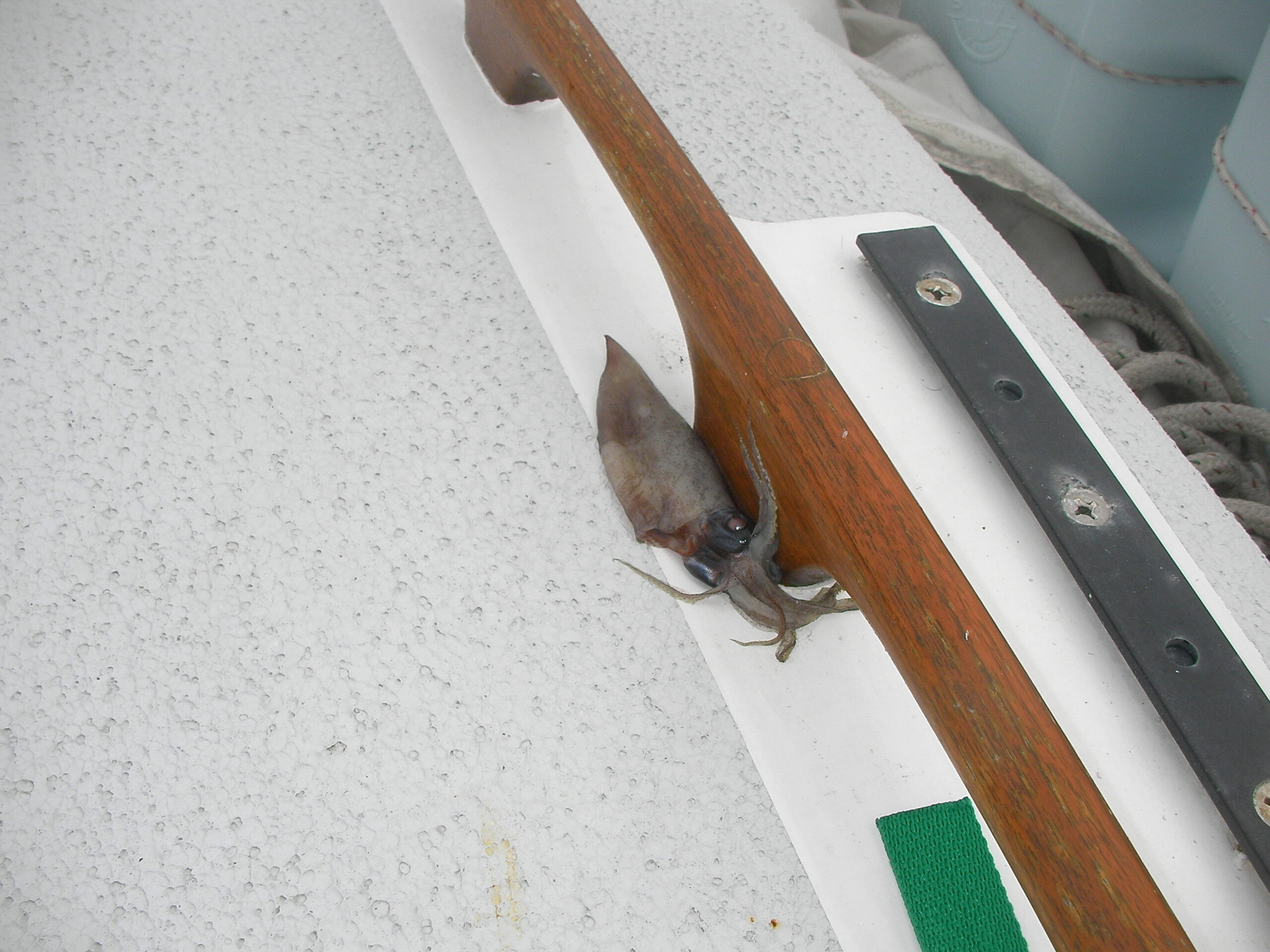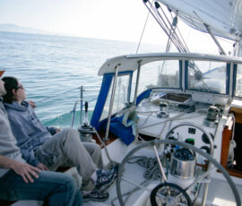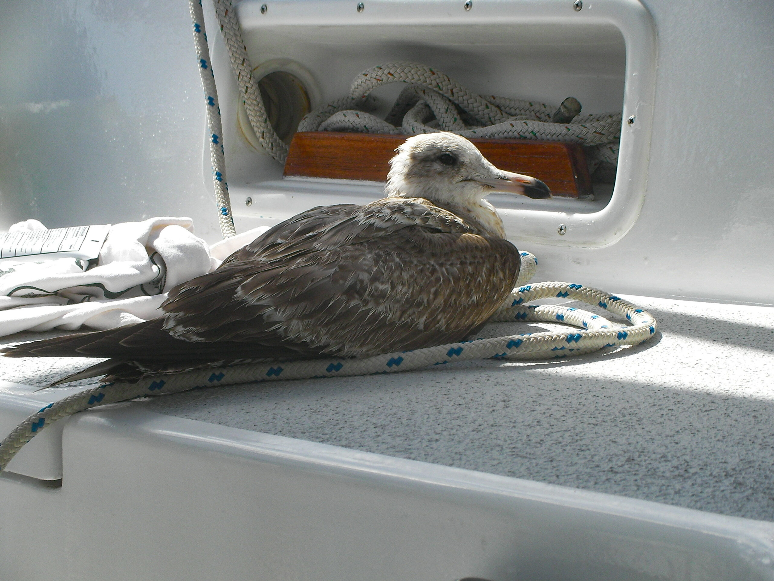 Well eventually of course conditions deteriorated to the point where we needed to modify our situation. Ahhh now the tricky part is what to change and how to do it, in the middle of the storm, isn’t it? Trying to get something accomplished in those conditions–i.e. two steps shy of “worst conditions imaginable”–is touch and go. If you mess something up with the sail, it will promptly flog itself to pieces before you have a chance to save it. If you make an honest mistake with steering, you’re liable to find yourself on your ass, which in a boat means “knocked down”, which means getting your mast to touch the water–not cool. Basically, you don’t have many chances to get it right. Whatever you do, you want to pull it off right the first time.